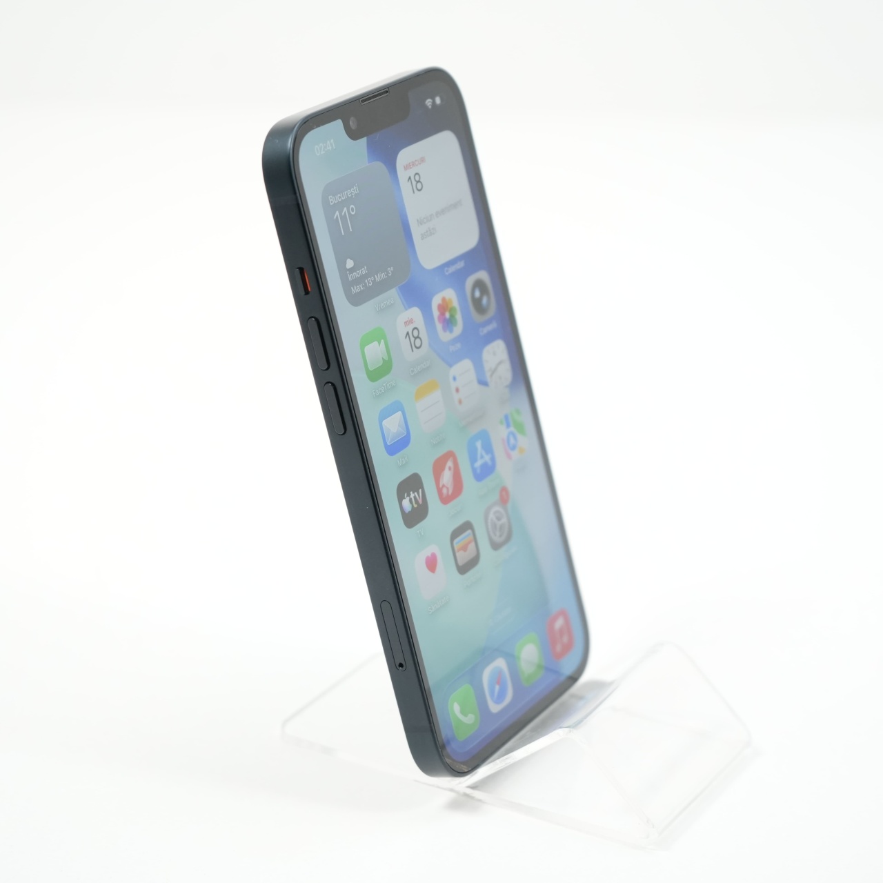 Ecran: 6.1 Procesor: Apple A15 Bionic Memorie RAM: 4 GB Memorie interna: 128GB Camera Foto: Principala 12 MPx, Frontala 12 MPx Stare retea: Liber de rețea