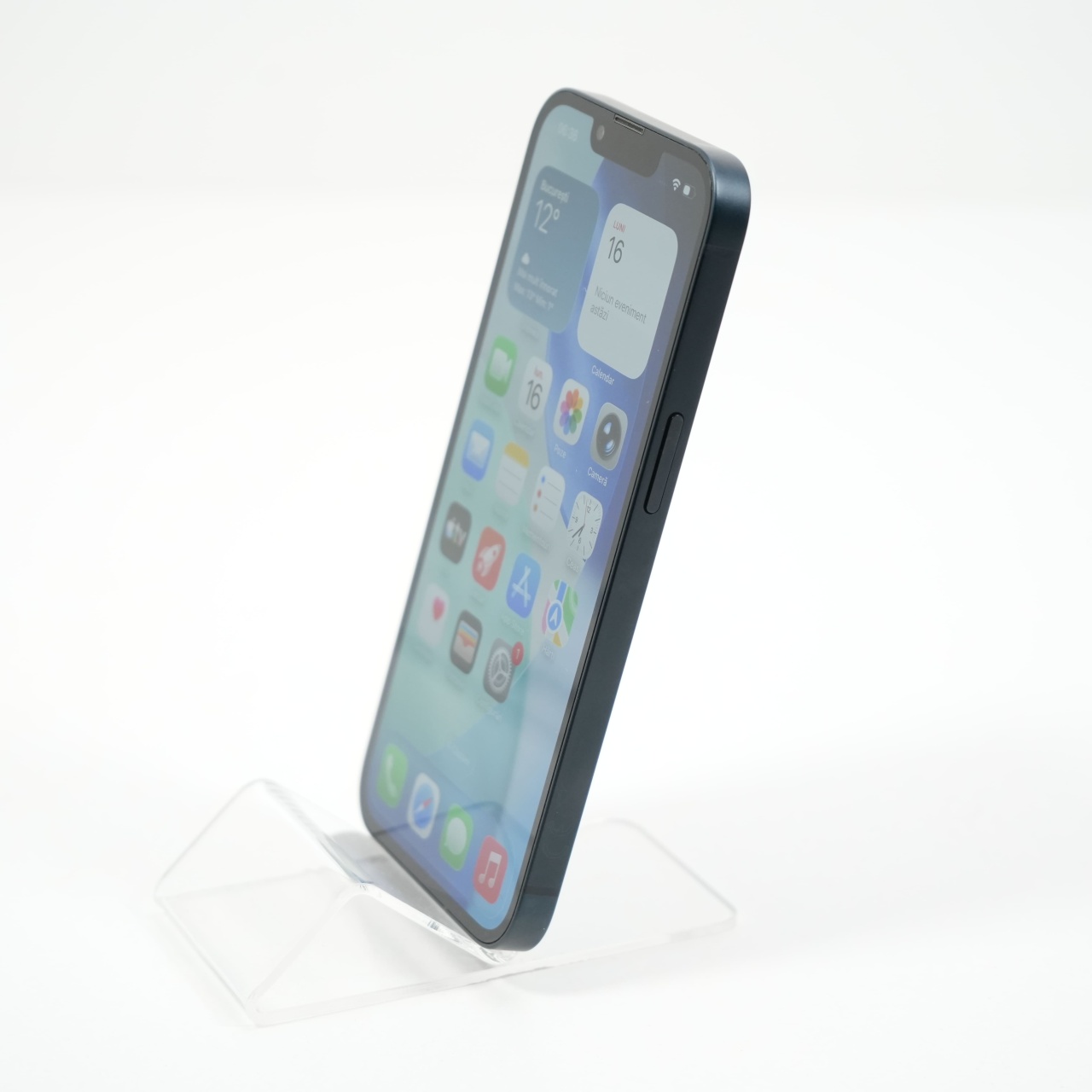 Ecran: 6.1 Procesor: Apple A15 Bionic Memorie RAM: 4GB Memorie interna: 128GB Camera Foto: Principala 12 MPx, Frontala 12 MPx Stare retea: Liber de rețea