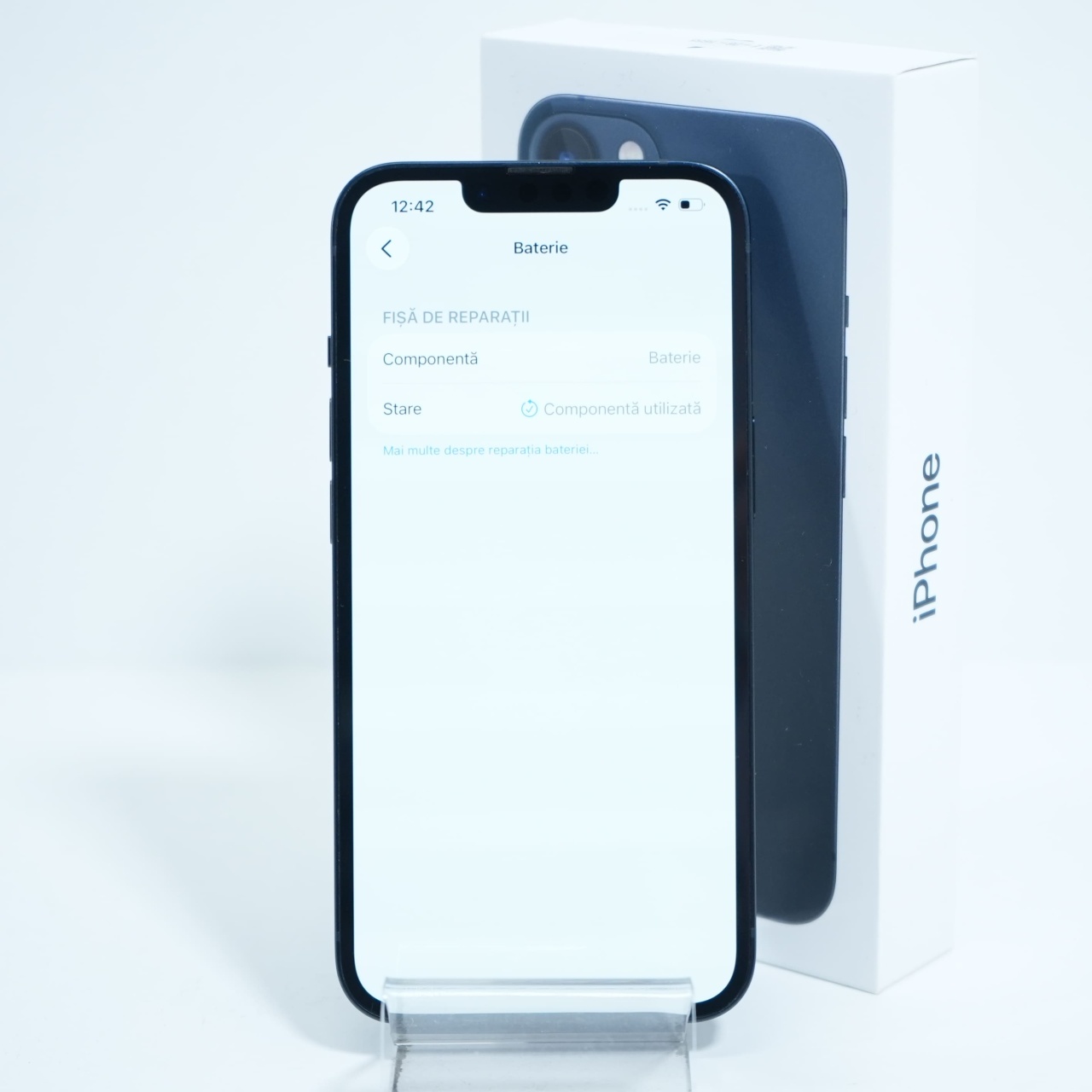 Ecran: 6.1 Procesor: Apple A15 Bionic Memorie RAM: 4 GB Memorie interna: 128GB Camera Foto: Principala 12 MPx, Frontala 12 MPx Stare retea: Liber de rețea
