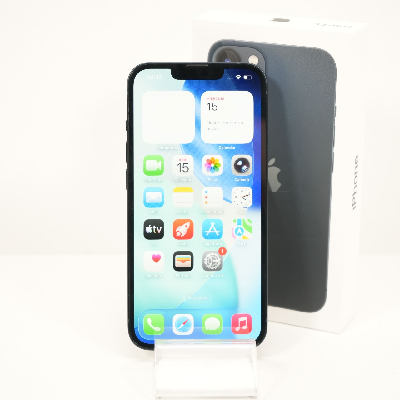 Ecran: 6.1 Procesor: Apple A15 Bionic Memorie RAM: 4 GB Memorie interna: 128GB Camera Foto: Principala 12 MPx, Frontala 12 MPx Stare retea: Liber de rețea