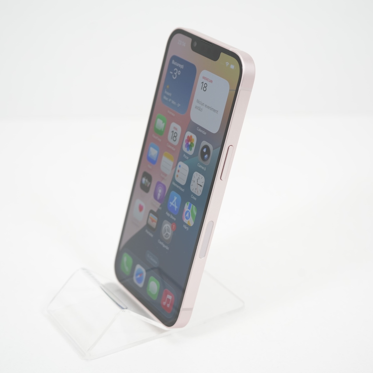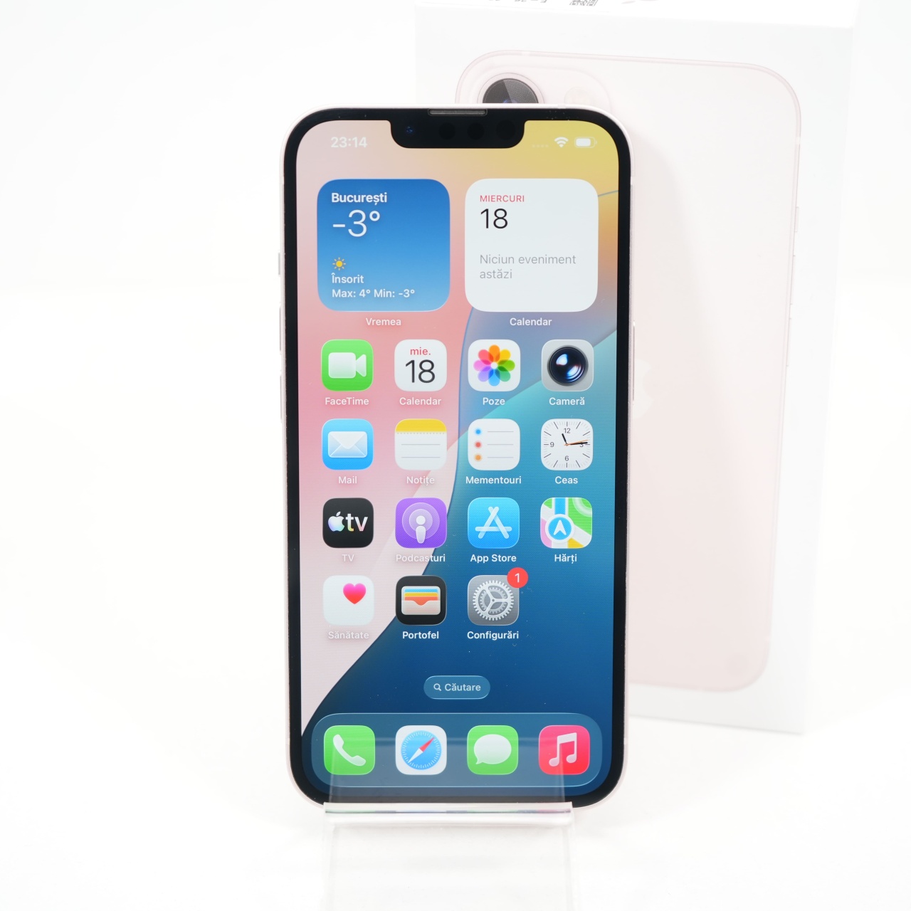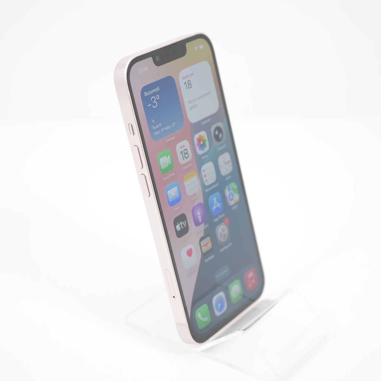 Ecran: 6.1 Procesor: Apple A15 Bionic Memorie RAM: 4 GB Memorie interna: 128GB Camera Foto: Principala 12 MPx, Frontala 12 MPx Stare retea: Liber de rețea