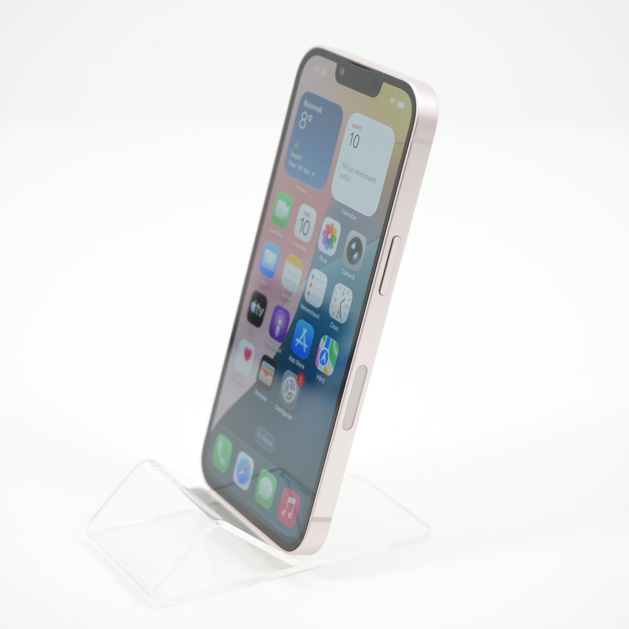 Ecran: 6.1 Procesor: Apple A15 Bionic Memorie RAM: 4GB Memorie interna: 128GB Camera Foto: Principala 12 MPx, Frontala 12 MPx Stare retea: Liber de rețea