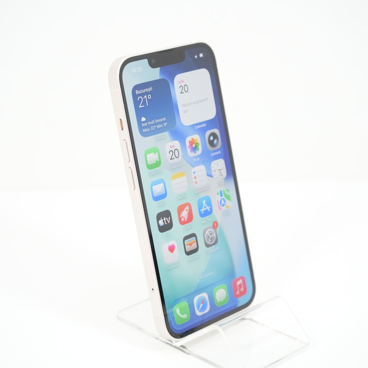 Ecran: 6.1 Procesor: Apple A15 Bionic Memorie RAM: 4GB Memorie interna: 128GB Camera Foto: Principala 12 MPx, Frontala 12 MPx Stare retea: Liber de rețea