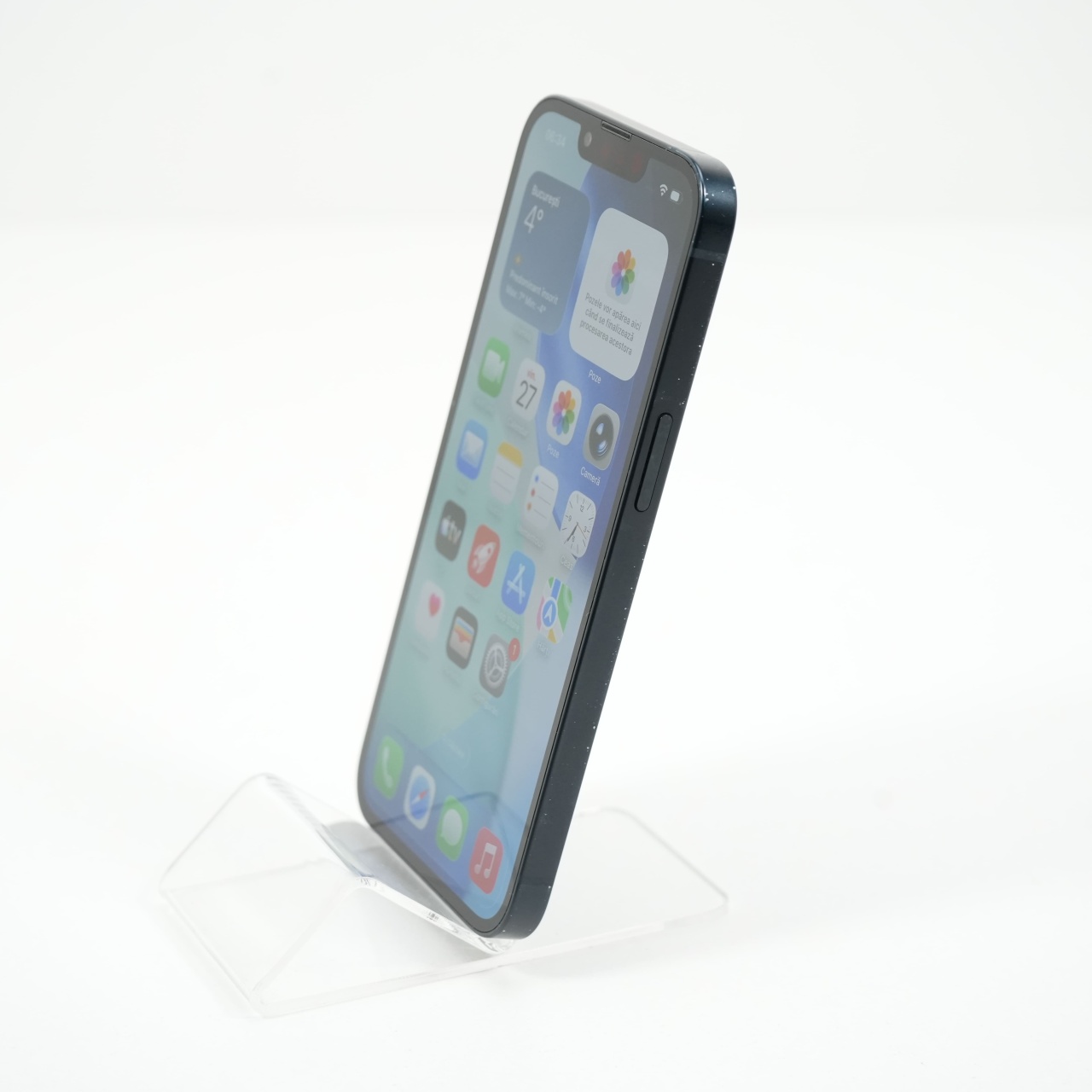 Ecran: 6.1 Procesor: Apple A15 Bionic Memorie RAM: 4GB Memorie interna: 256GB Camera Foto: Principala 12 MPx, Frontala 12 MPx Stare retea: Liber de retea