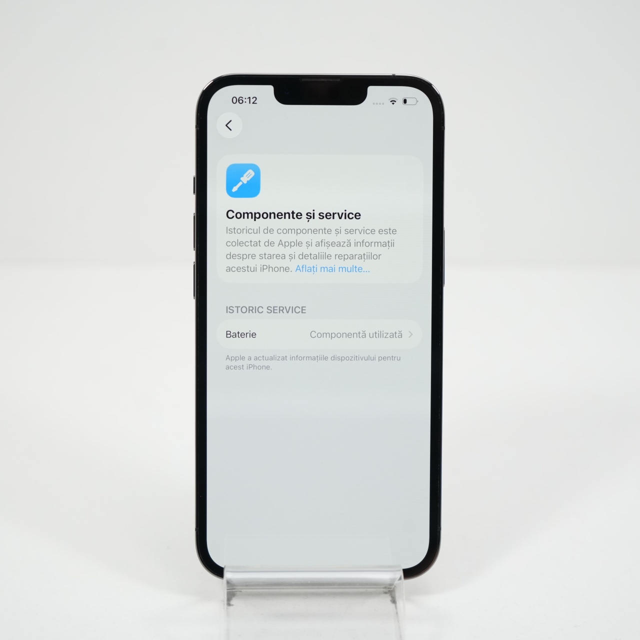Ecran: 6.1, Refresh Rate 120 Hz Procesor: Apple A15 Bionic Memorie RAM: 6 GB Memorie interna: 128GB Camera Foto: Principala 12 MPx, Frontala 12 MPx Stare retea: Liber de rețea