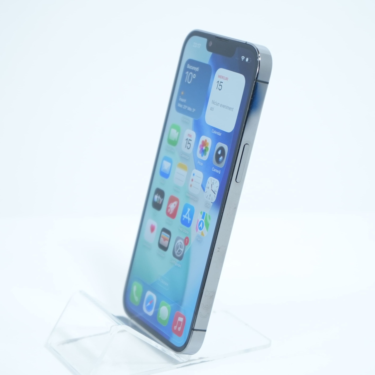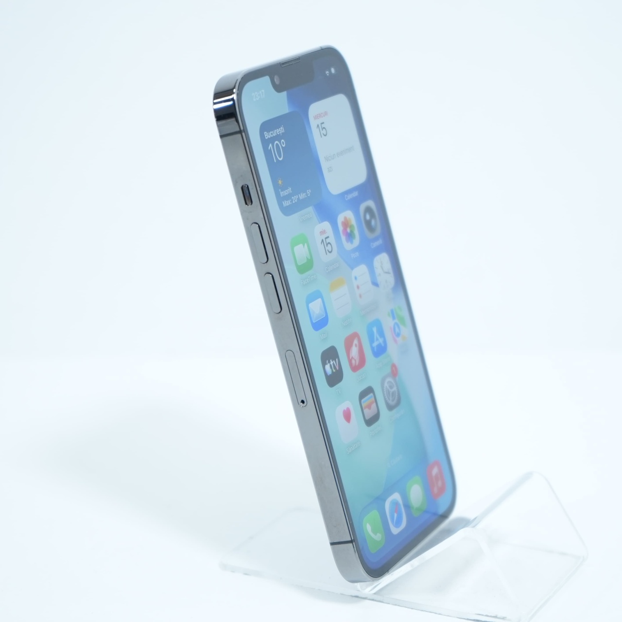 Ecran: 6.1, Refresh Rate 120 Hz Procesor: Apple A15 Bionic Memorie RAM: 6 GB Memorie interna: 128GB Camera Foto: Principala 12 MPx, Frontala 12 MPx Stare retea: Liber de rețea
