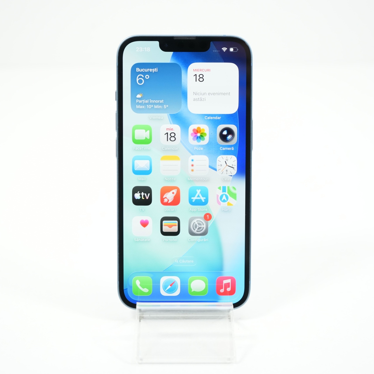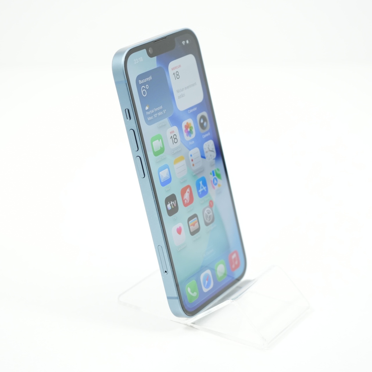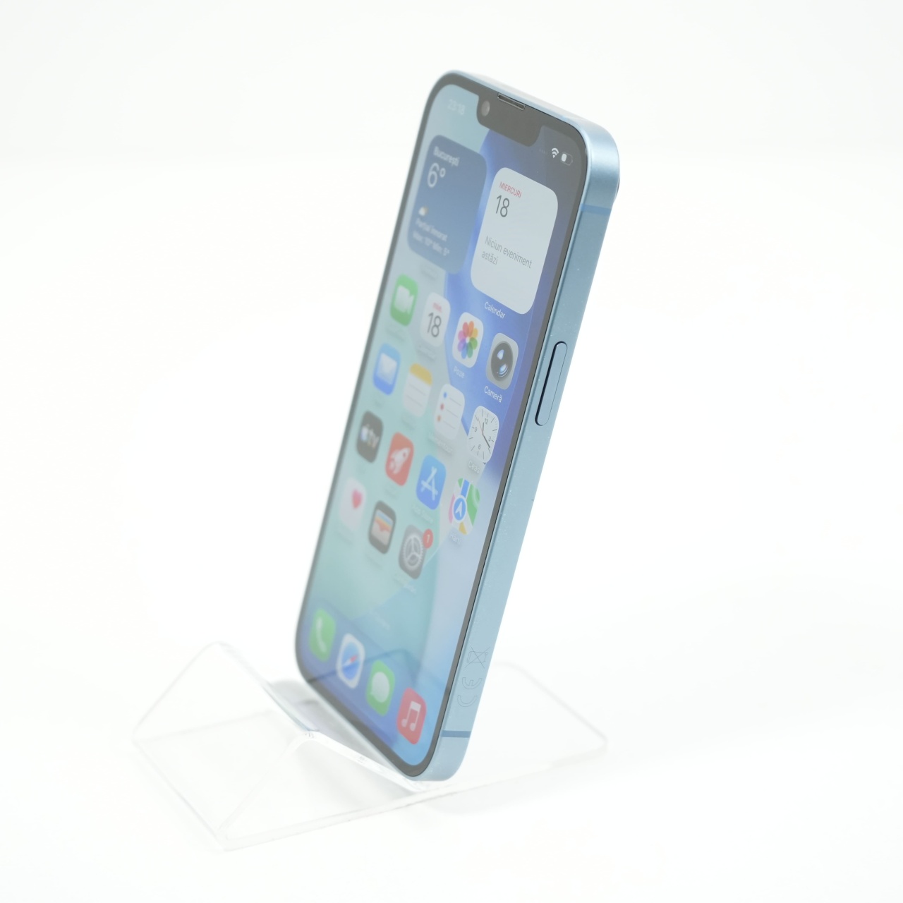 Ecran: 6.1 Procesor: Apple A15 Bionic Memorie RAM: 6 GB Memorie interna: 128GB Camera foto: Principala 12 MPx, Frontala 12 MPx Stare retea: Liber de rețea