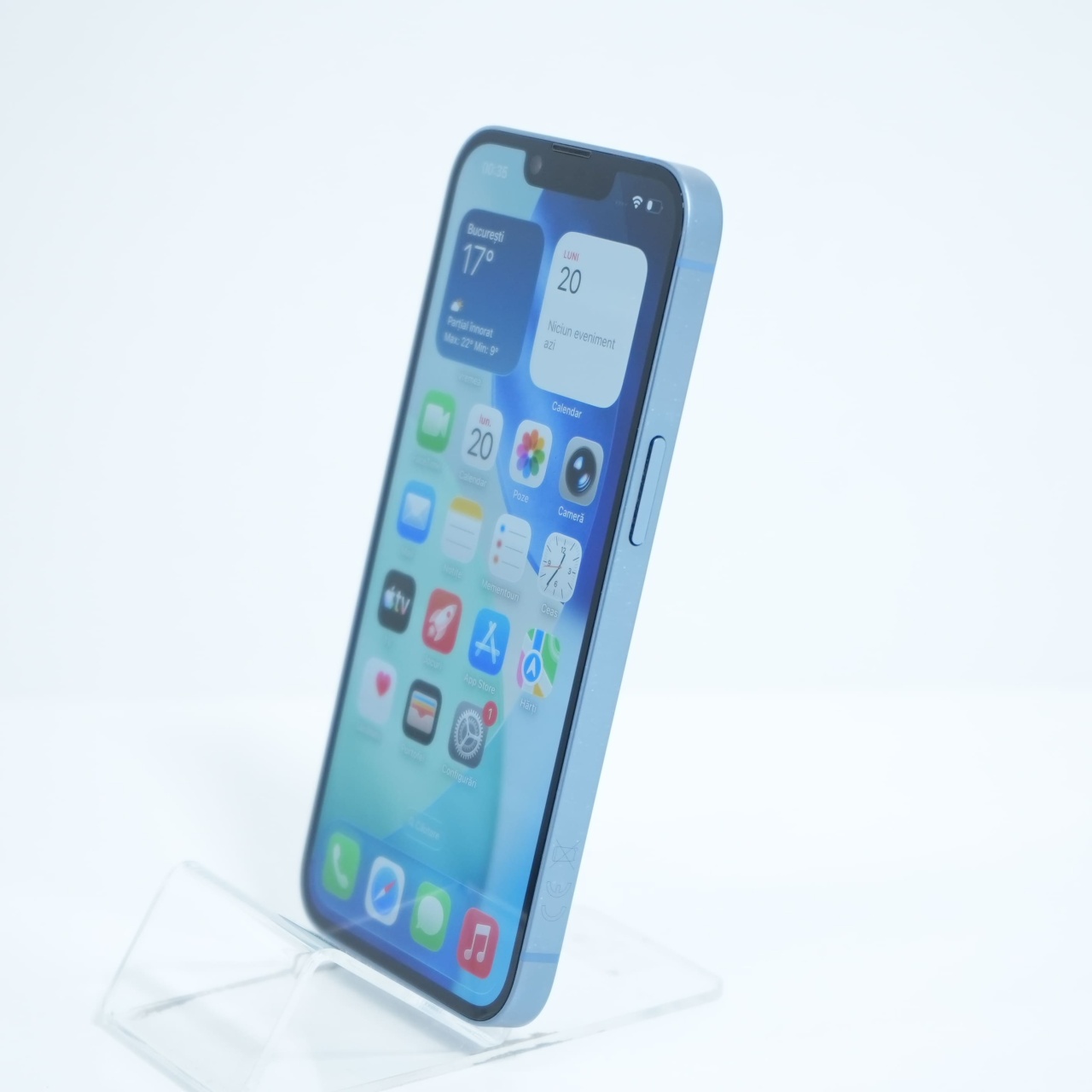 Ecran: 6.1 Procesor: Apple A15 Bionic Memorie RAM: 6 GB Memorie interna: 128GB Camera foto: Principala 12 MPx, Frontala 12 MPx Stare retea: Liber de rețea