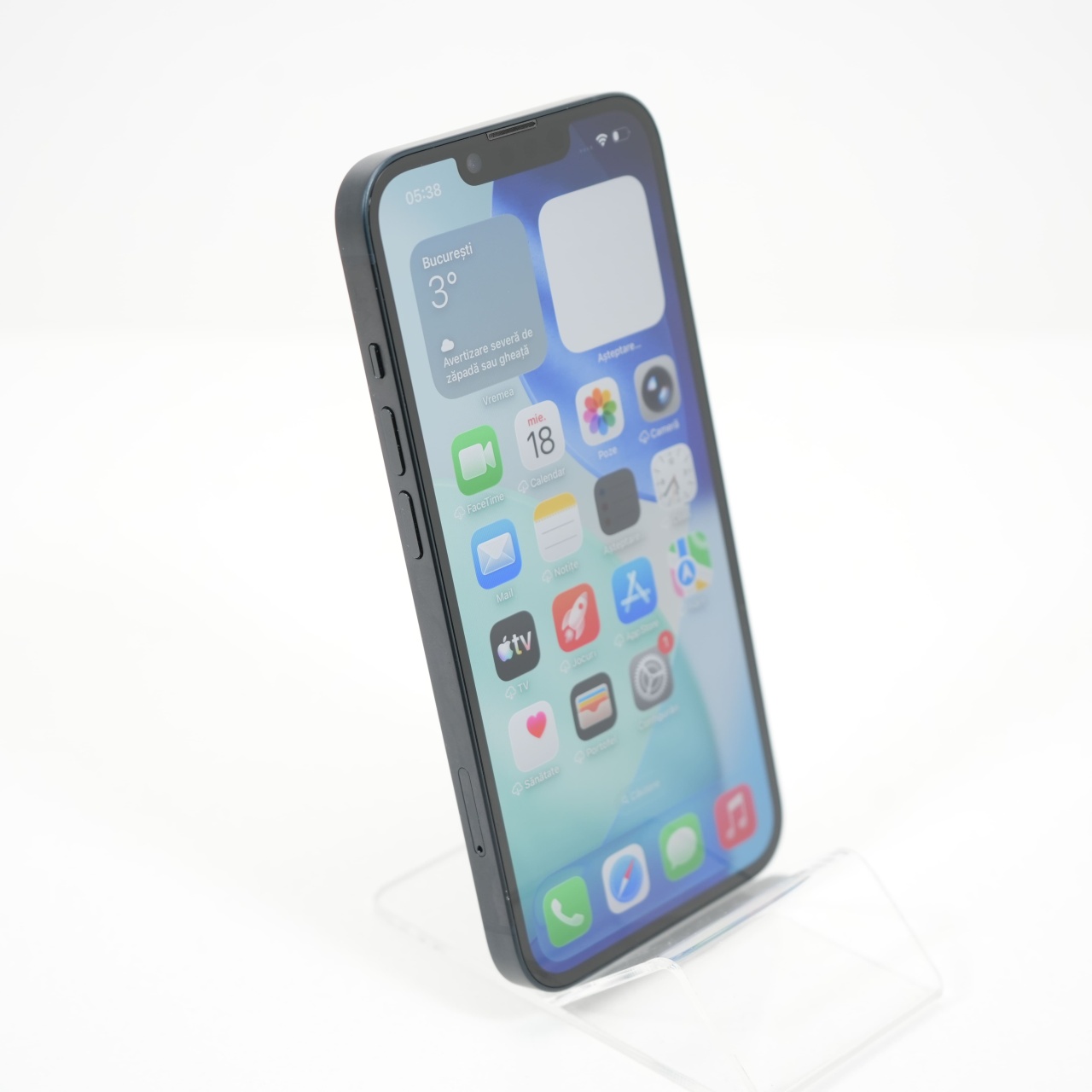 Ecran: 6.1 Procesor: Apple A15 Bionic Memorie RAM: 6 GB Memorie interna: 128GB Camera foto: Principala 12 MPx, Frontala 12 MPx Stare retea: Liber de rețea