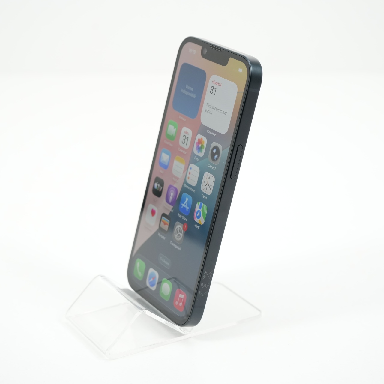 Ecran: 6.1 Procesor: Apple A15 Bionic Memorie RAM: 6 GB Memorie interna: 128GB Camera foto: Principala 12 MPx, Frontala 12 MPx Stare retea: Liber de rețea