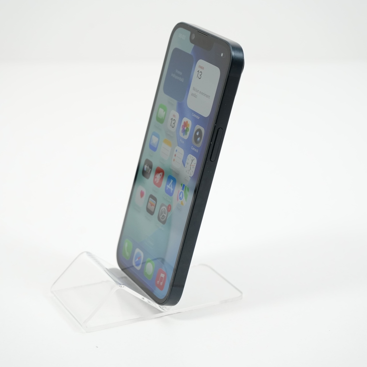 Ecran: 6.1 Procesor: Apple A15 Bionic Memorie RAM: 6 GB Memorie interna: 128GB Camera foto: Principala 12 MPx, Frontala 12 MPx Stare retea: Liber de rețea