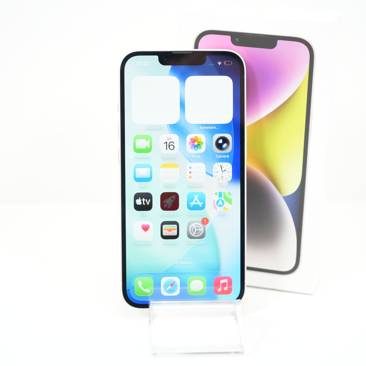 Ecran: 6.1 Procesor: Apple A15 Bionic Memorie RAM: 6 GB Memorie interna: 128GB Camera foto: Principala 12 MPx, Frontala 12 MPx Stare retea: Liber de rețea