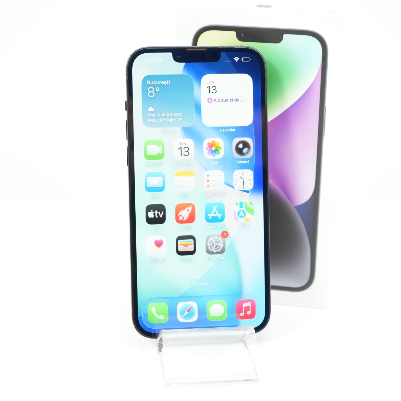 Ecran: 6.7 Procesor: Apple A15 Bionic Memorie RAM: 6 GB Memorie interna: 128GB Camera Foto: Principala 12 MPx, Frontala 12 MPx Stare retea: Liber de rețea