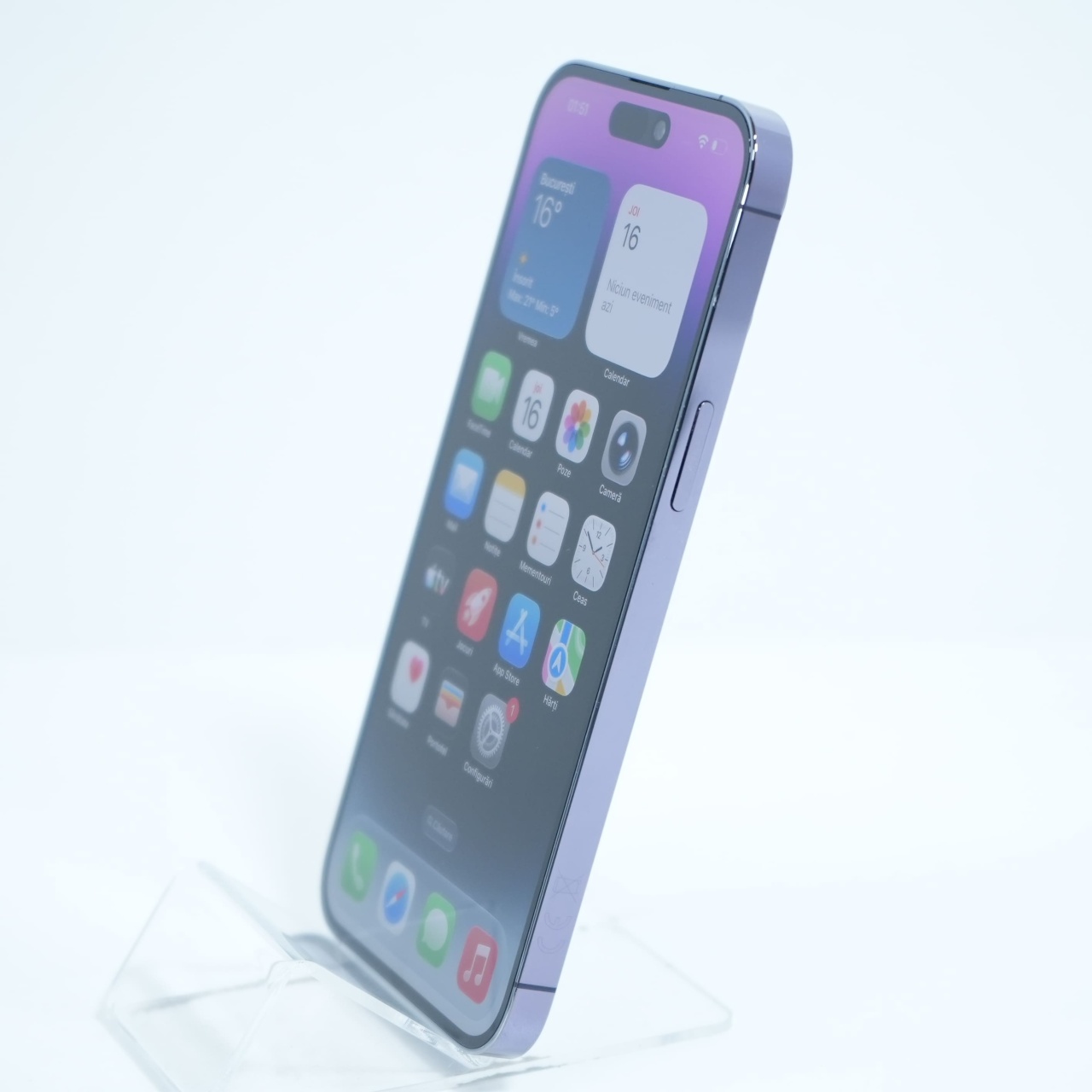 Ecran: 6.7, Refresh Rate 120 Hz Procesor: Apple A16 Bionic Memorie RAM: 6GB Memorie interna: 128GB Camera foto: Principala 48 MPx, Frontala de 12 MPx Stare retea: Liber de rețea
