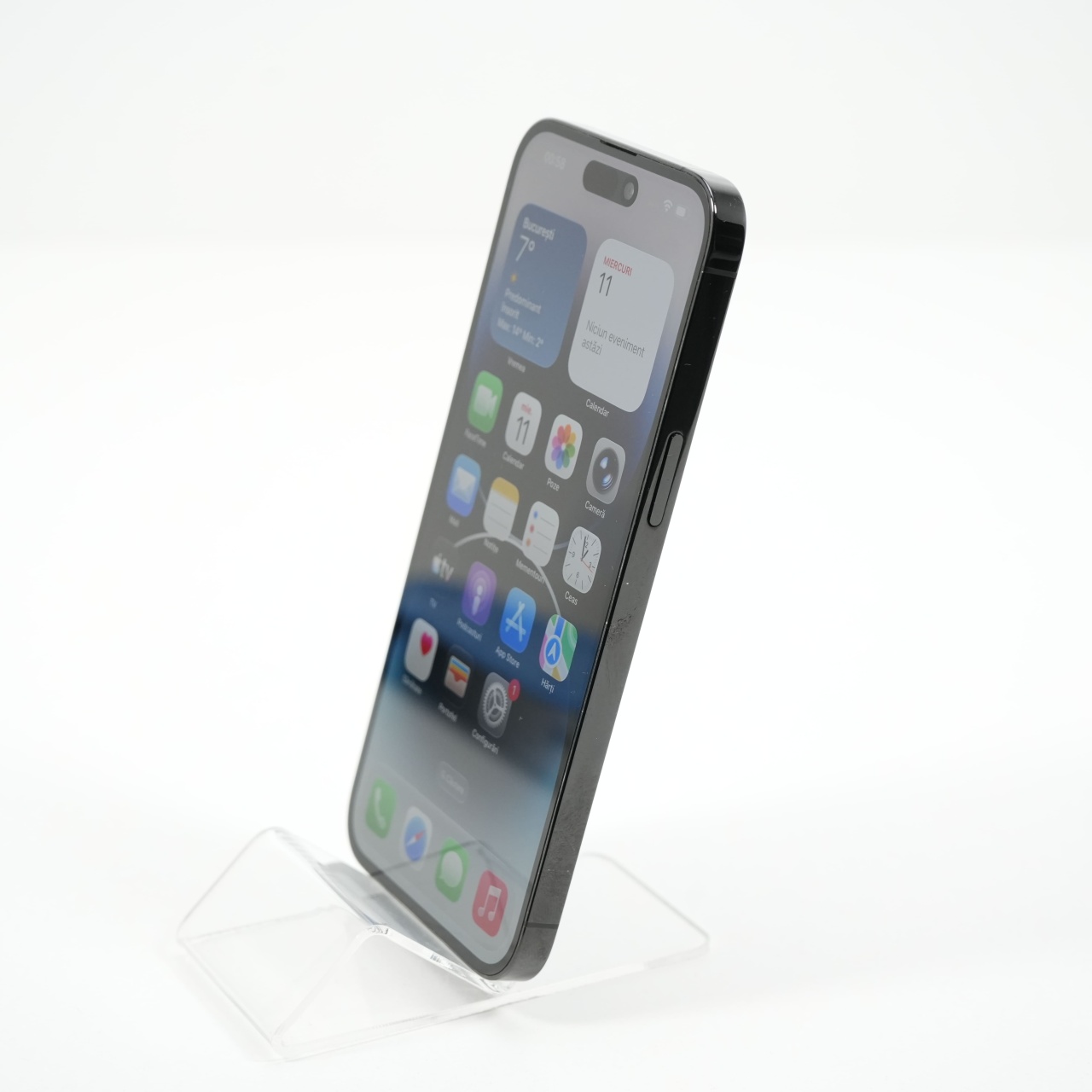 Ecran: 6.7, Refresh Rate 120 Hz Procesor: Apple A16 Bionic Memorie RAM: 6GB Memorie interna: 128GB Camera foto: Principala 48 MPx, Frontala de 12 MPx Stare retea: Liber de rețea