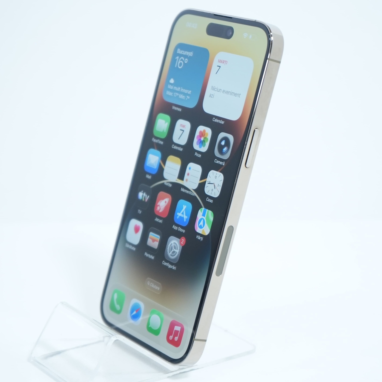 Ecran: 6.7, Refresh Rate 120 Hz Procesor: Apple A16 Bionic Memorie RAM: 6 GB Memorie interna: 256GB Camera foto: Principala 48 MPx, Frontala de 12 MPx Stare retea: Doar e-SIM, Liber de rețea