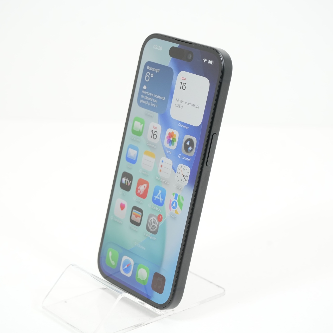 Ecran: 6.1 Procesor: Apple A16 Bionic Memorie RAM: 6GB Memorie interna: 128GB Camera foto: Principala 48 MPx, Frontala 12 MPx Stare retea: Liber de retea