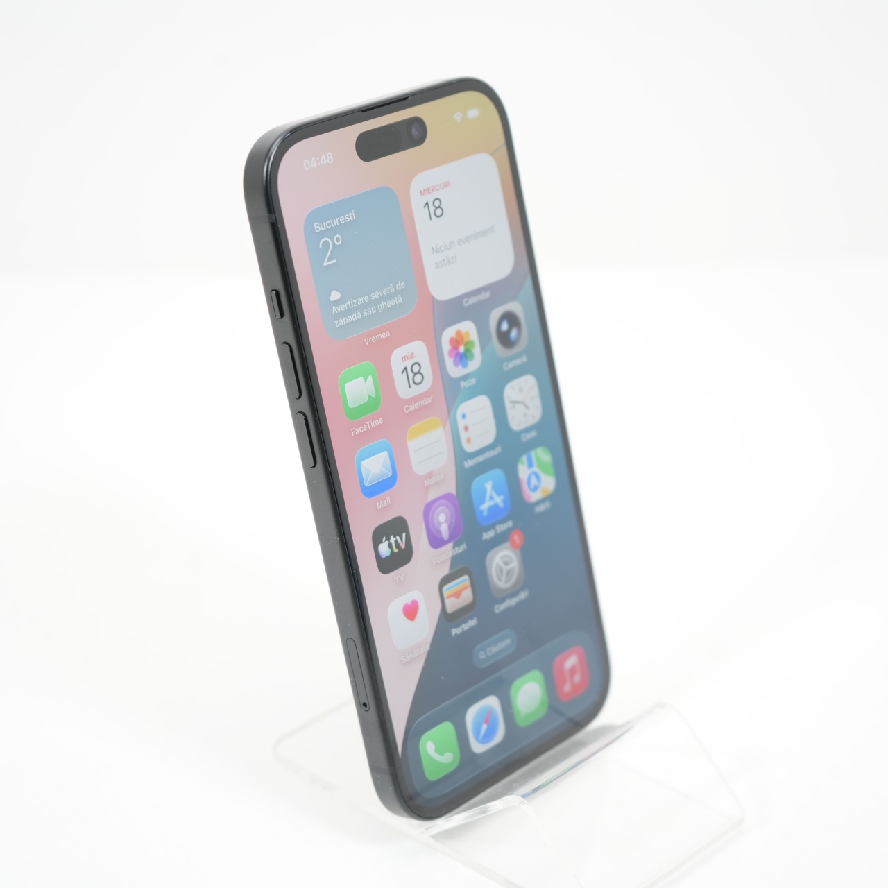 Ecran: 6.1 Procesor: Apple A16 Bionic Memorie RAM: 6 GB Memorie interna: 128GB Camera foto: Principala 48 MPx, Frontala 12 MPx Stare retea: Liber de rețea