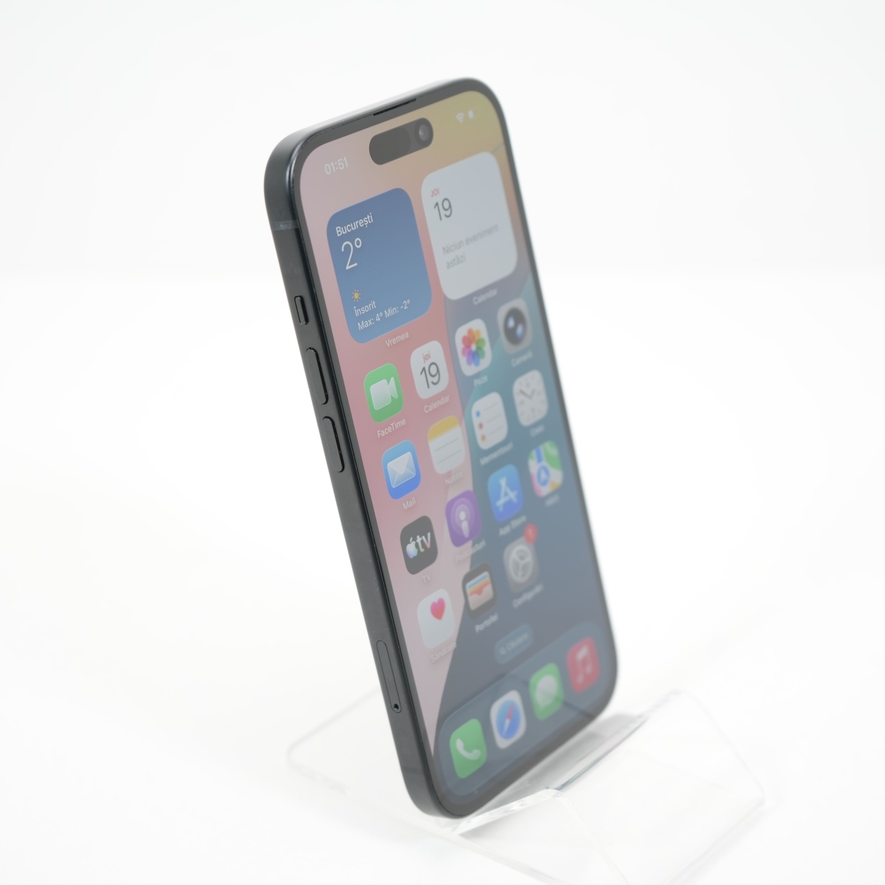 Ecran: 6.1 Procesor: Apple A16 Bionic Memorie RAM: 6 GB Memorie interna: 128GB Camera foto: Principala 48 MPx, Frontala 12 MPx Stare retea: Liber de rețea