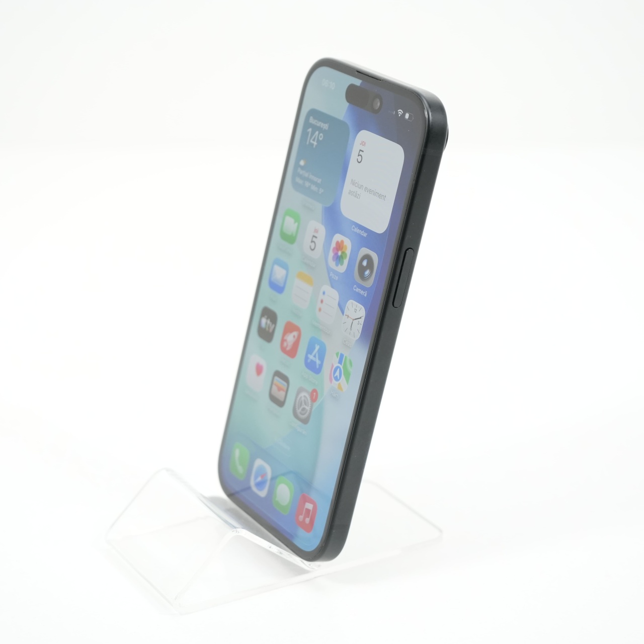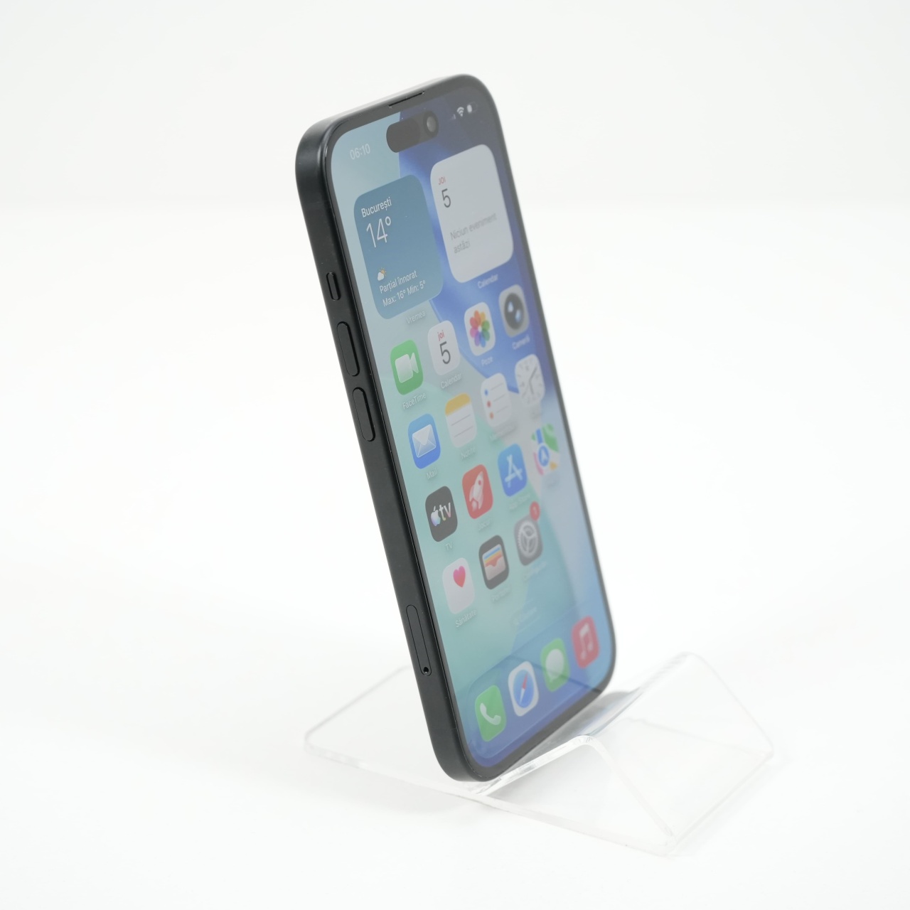 Ecran: 6.1 Procesor: Apple A16 Bionic Memorie RAM: 6GB Memorie interna: 128GB Camera foto: Principala 48 MPx, Frontala 12 MPx Stare retea: Liber de retea