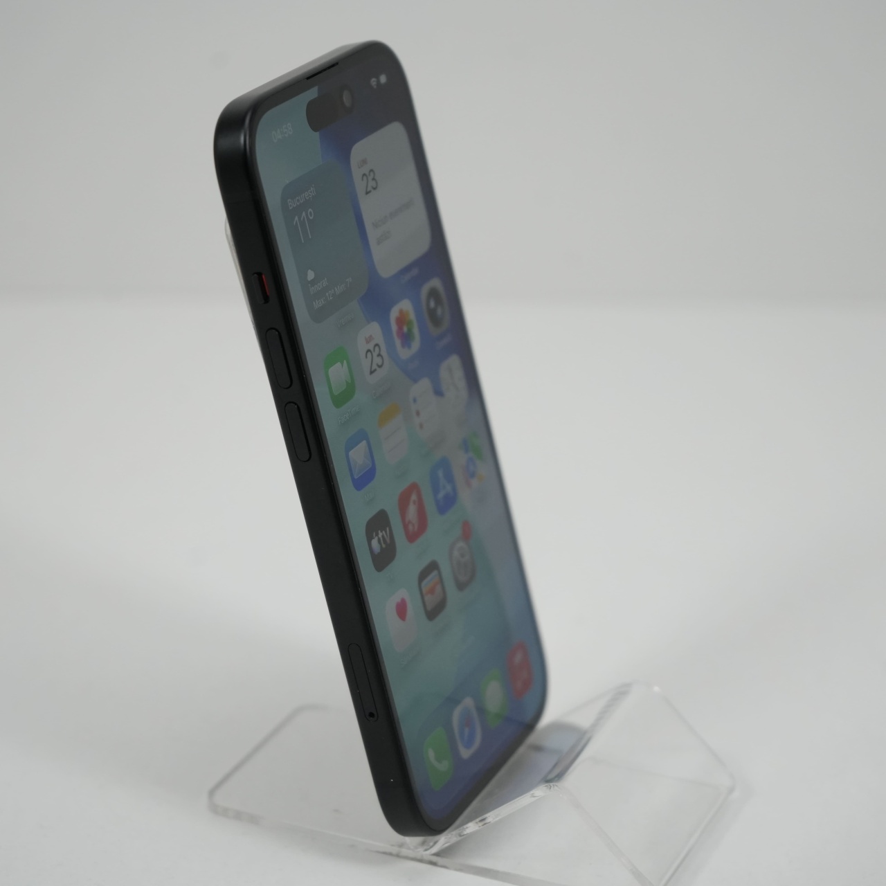 Ecran: 6.1 Procesor: Apple A16 Bionic Memorie RAM: 6 GB Memorie interna: 128GB Camera foto: Principala 48 MPx, Frontala 12 MPx Stare retea: Liber de rețea