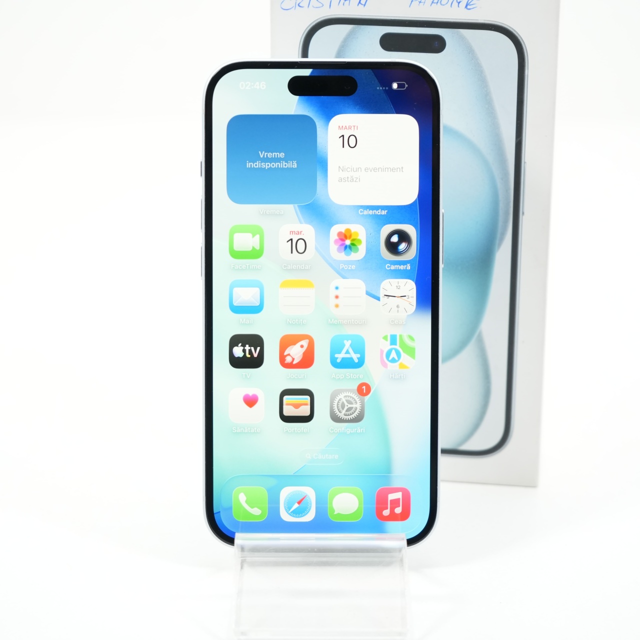 Ecran: 6.1 Procesor: Apple A16 Bionic Memorie RAM: 6GB Memorie interna: 128GB Camera foto: Principala 48 MPx, Frontala 12 MPx Stare retea: Liber de retea