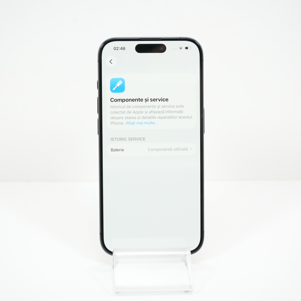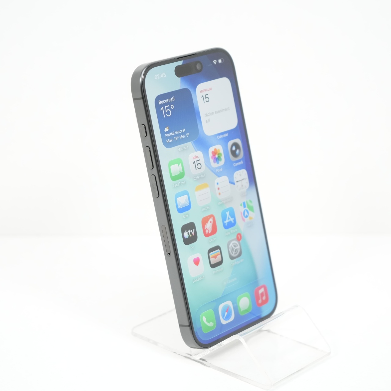 Ecran: 6.1, Refresh Rate 120 Hz Procesor: Apple A17 Pro Memorie RAM: 8GB Memorie interna: 128GB Camera Foto: Principala 48 MPx, Frontala 12 MPx Stare retea: Liber de retea