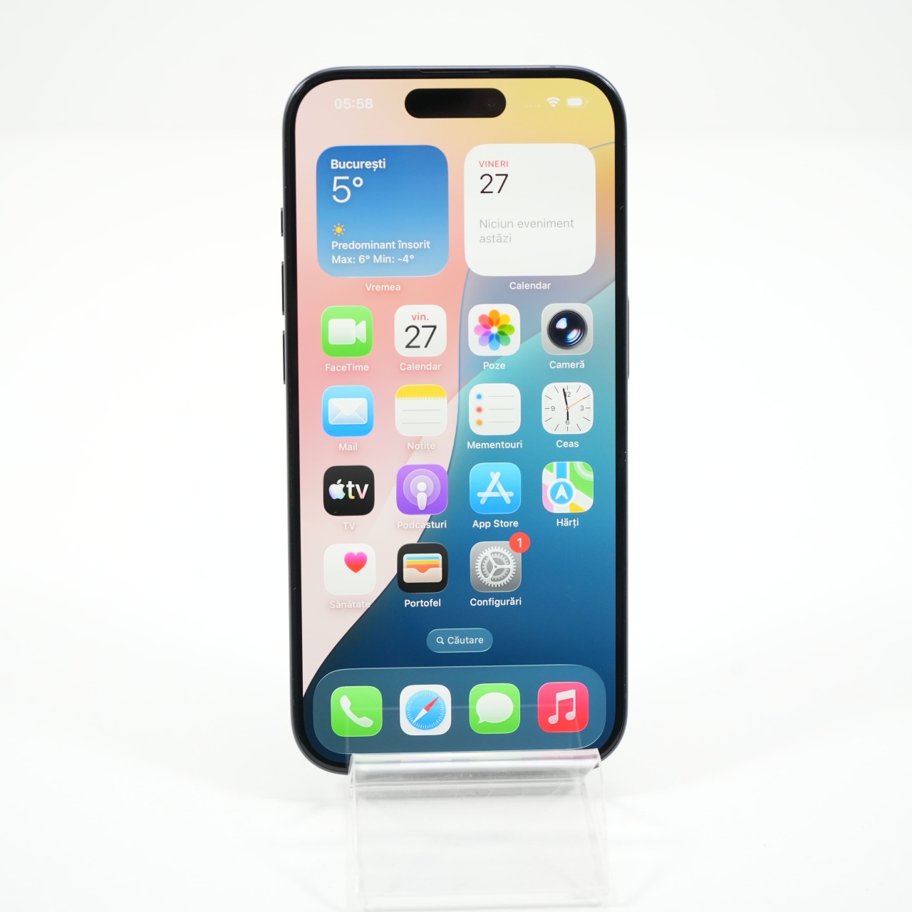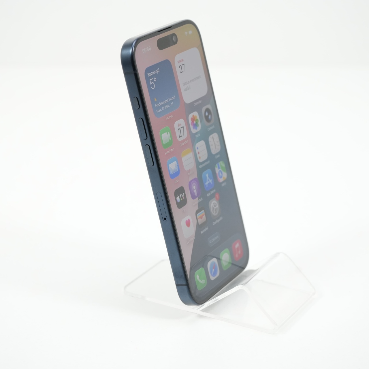 Ecran: 6.1, Refresh Rate 120 Hz Procesor: Apple A17 Pro Memorie RAM: 8GB Memorie interna: 128GB Camera Foto: Principala 48 MPx, Frontala 12 MPx Stare retea: Liber de retea