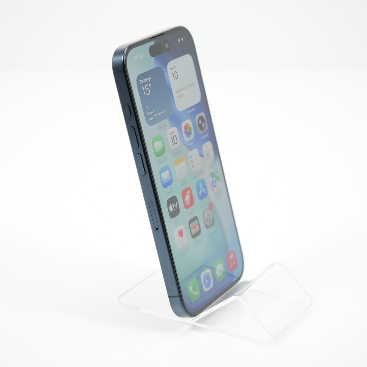 Ecran: 6.1, Refresh Rate 120 Hz Procesor: Apple A17 Pro Memorie RAM: 8GB Memorie interna: 128GB Camera Foto: Principala 48 MPx, Frontala 12 MPx Stare retea: Liber de retea
