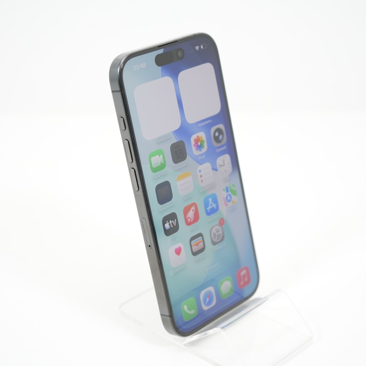 Ecran: 6.1, Refresh Rate 120 Hz Procesor: Apple A17 Pro Memorie RAM: 8GB Memorie interna: 256GB Camera Foto: Principala 48 MPx, Frontala 12 MPx Stare retea: Liber de rețea
