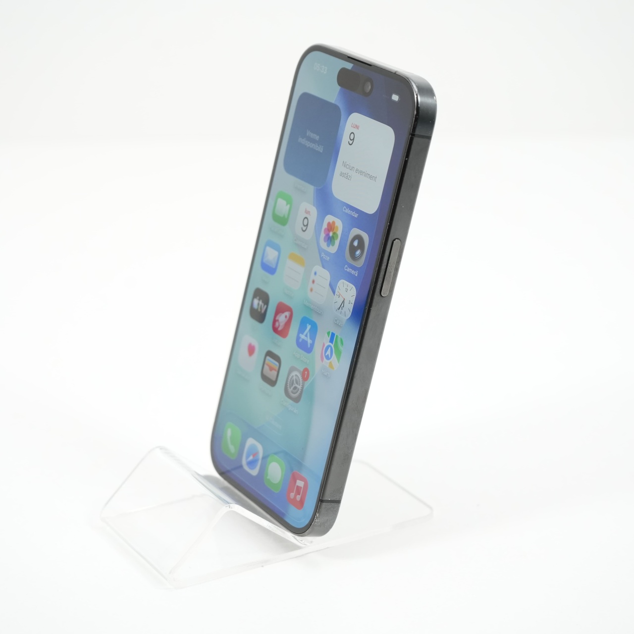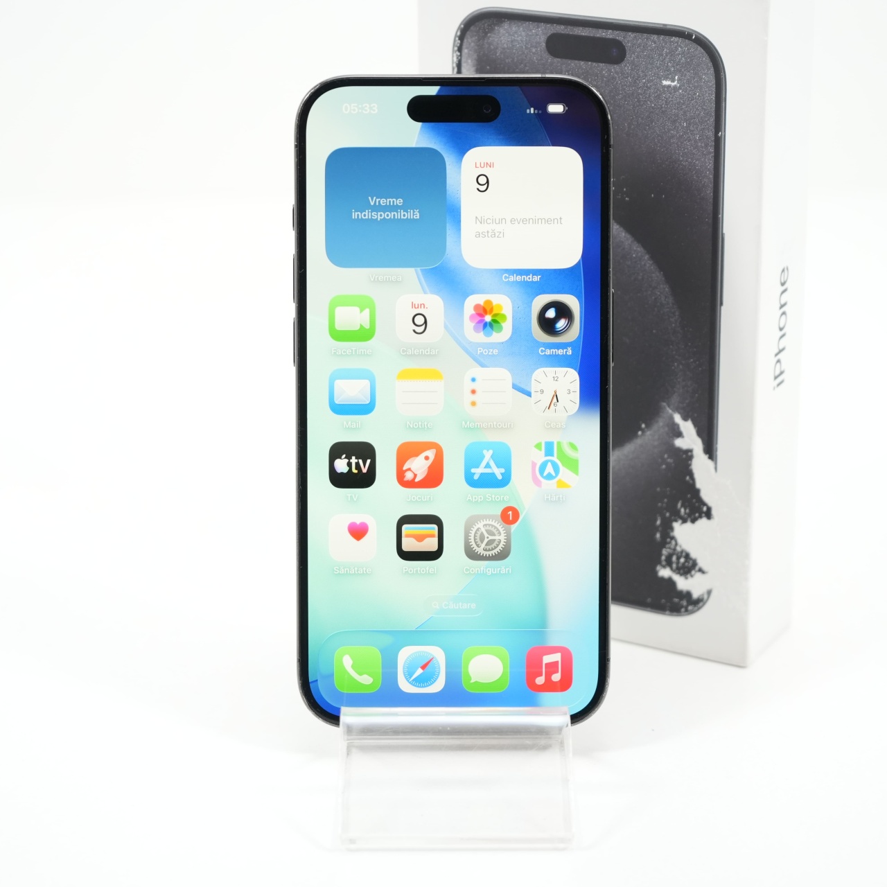 Ecran: 6.1, Refresh Rate 120 Hz Procesor: Apple A17 Pro Memorie RAM: 8GB Memorie interna: 256GB Camera Foto: Principala 48 MPx, Frontala 12 MPx Stare retea: Liber de rețea