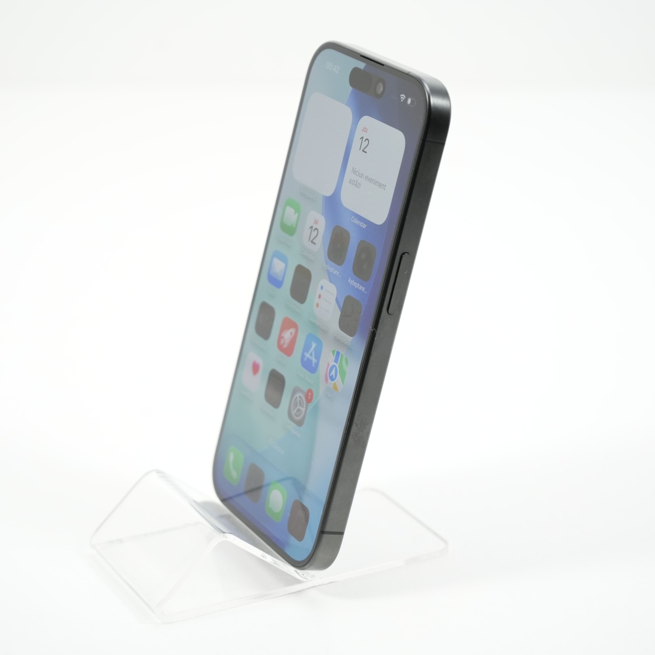 Ecran: 6.1, Refresh Rate 120 Hz Procesor: Apple A17 Pro Memorie RAM: 8 GB Memorie interna: 256GB Camera Foto: Principala 48 MPx, Frontala 12 MPx Stare retea: Liber de rețea