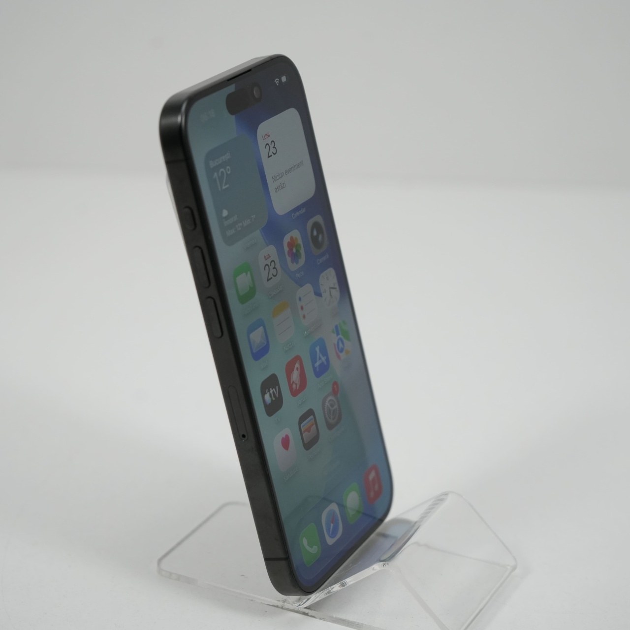 Ecran: 6.1, Refresh Rate 120 Hz Procesor: Apple A17 Pro Memorie RAM: 8GB Memorie interna: 256GB Camera Foto: Principala 48 MPx, Frontala 12 MPx Stare retea: Liber de rețea