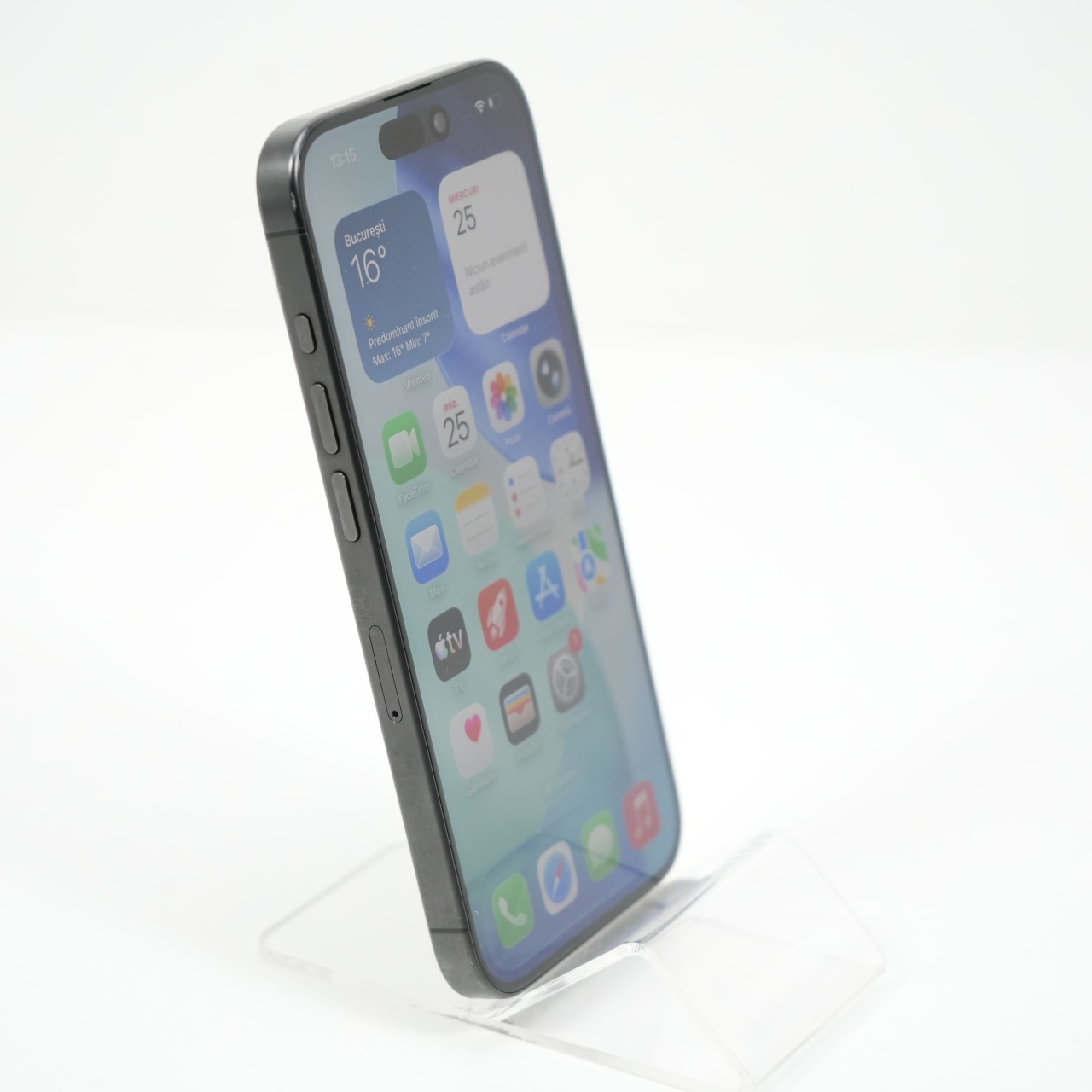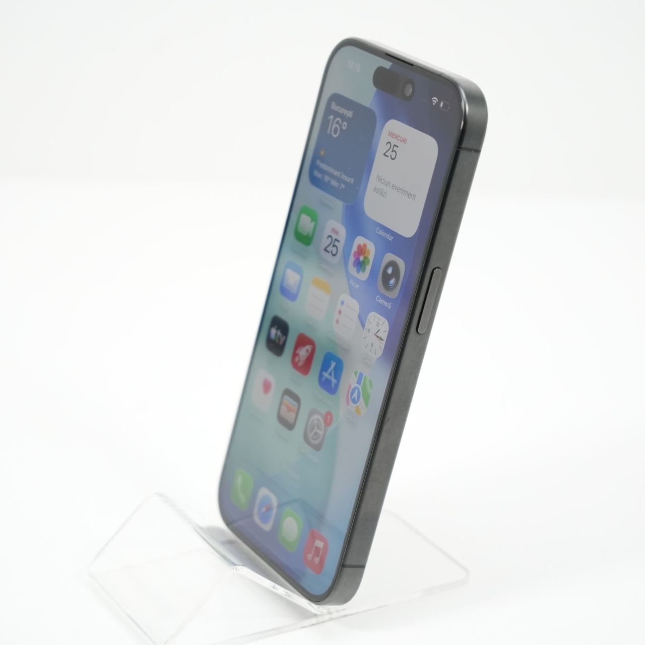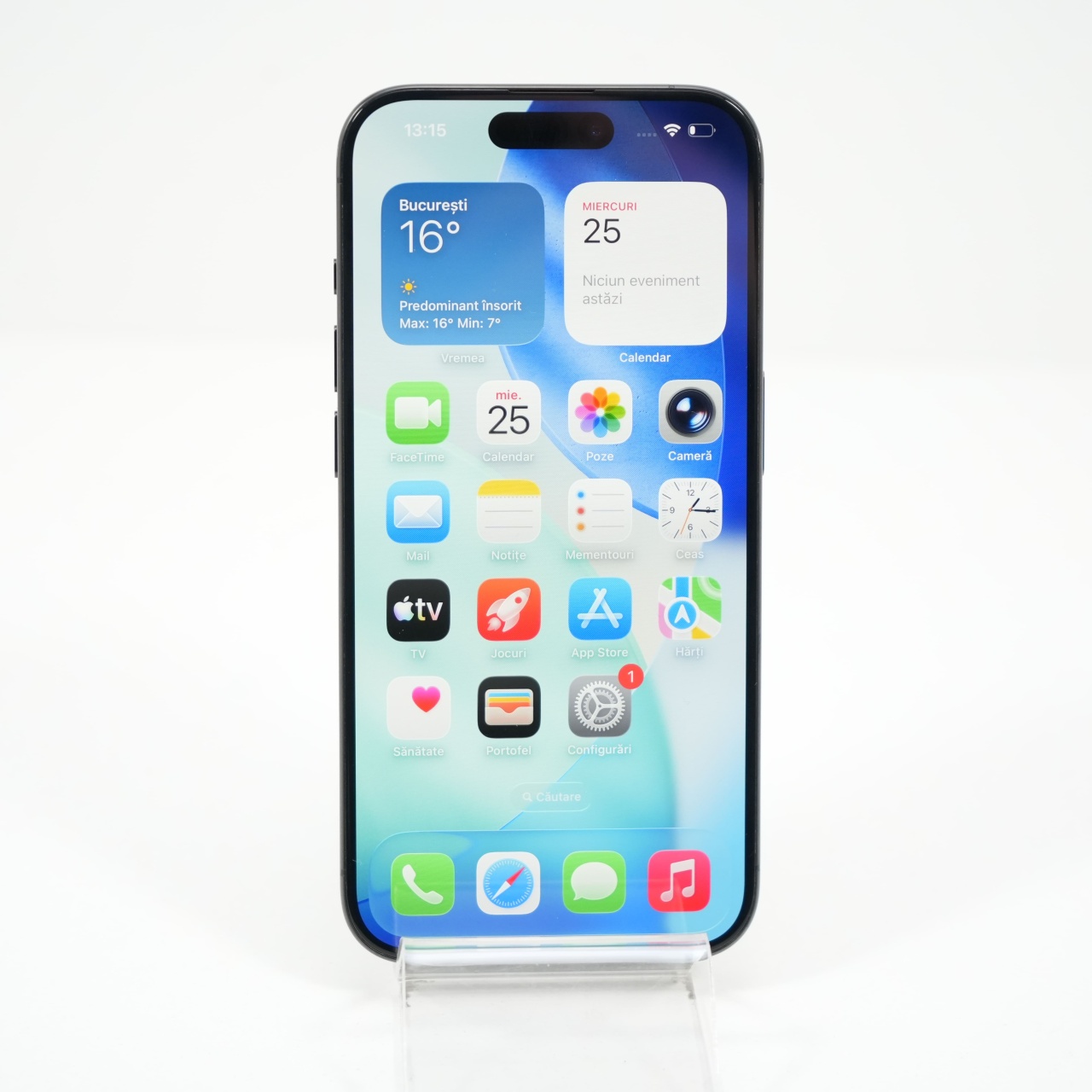 Ecran: 6.1, Refresh Rate 120 Hz Procesor: Apple A17 Pro Memorie RAM: 8GB Memorie interna: 256GB Camera Foto: Principala 48 MPx, Frontala 12 MPx Stare retea: Liber de rețea