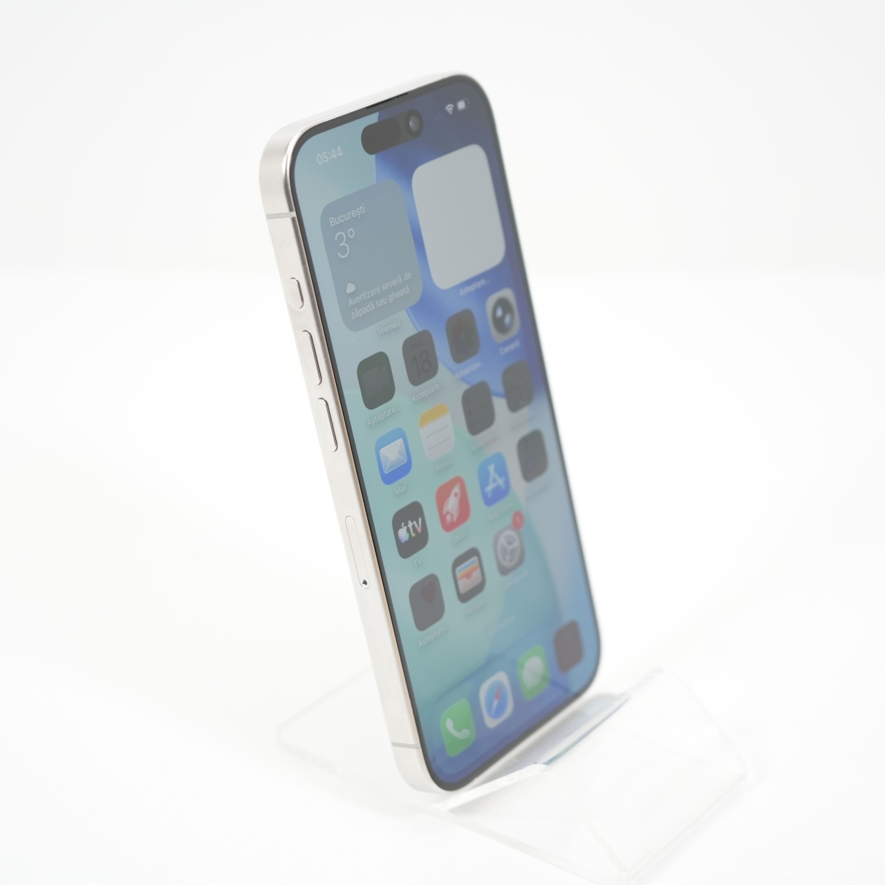 Ecran: 6.1, Refresh Rate 120 Hz Procesor: Apple A17 Pro Memorie RAM: 8GB Memorie interna: 256GB Camera Foto: Principala 48 MPx, Frontala 12 MPx Stare retea: Liber de retea, Liber de rețea