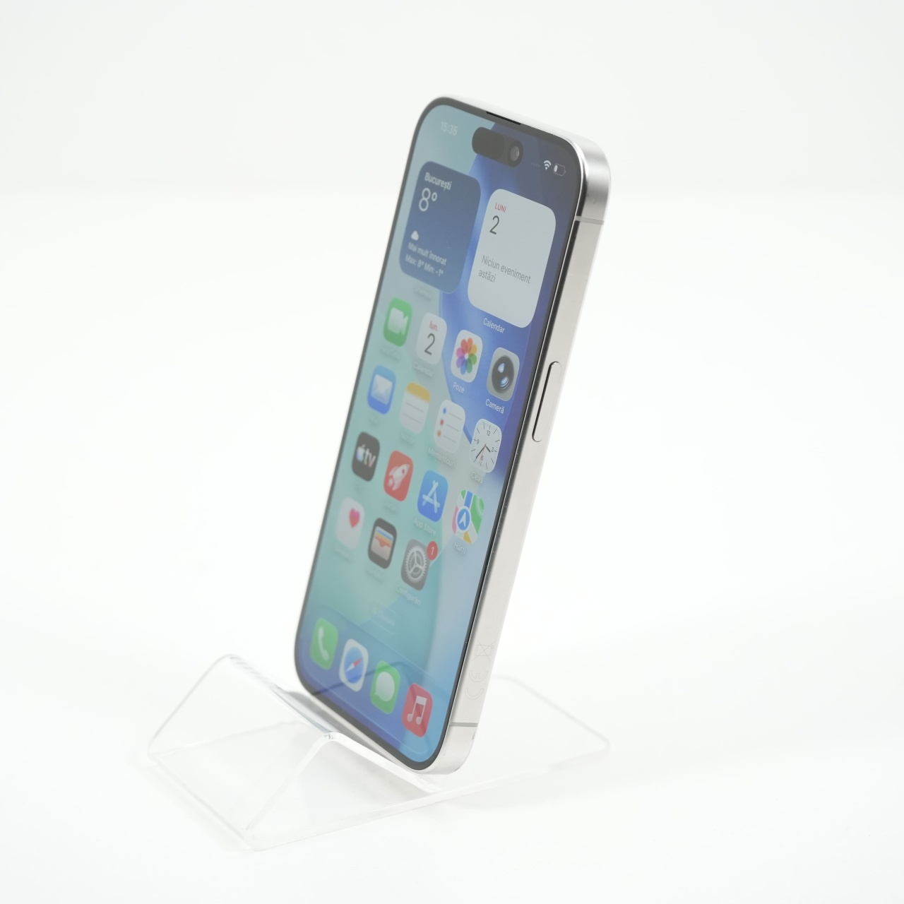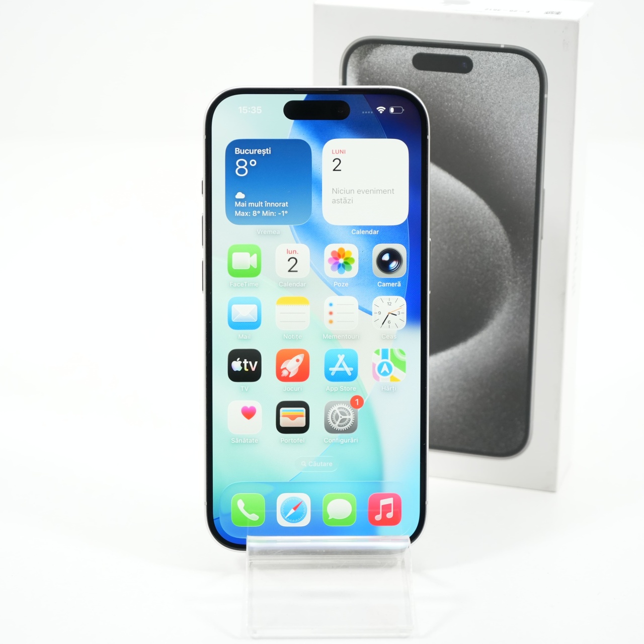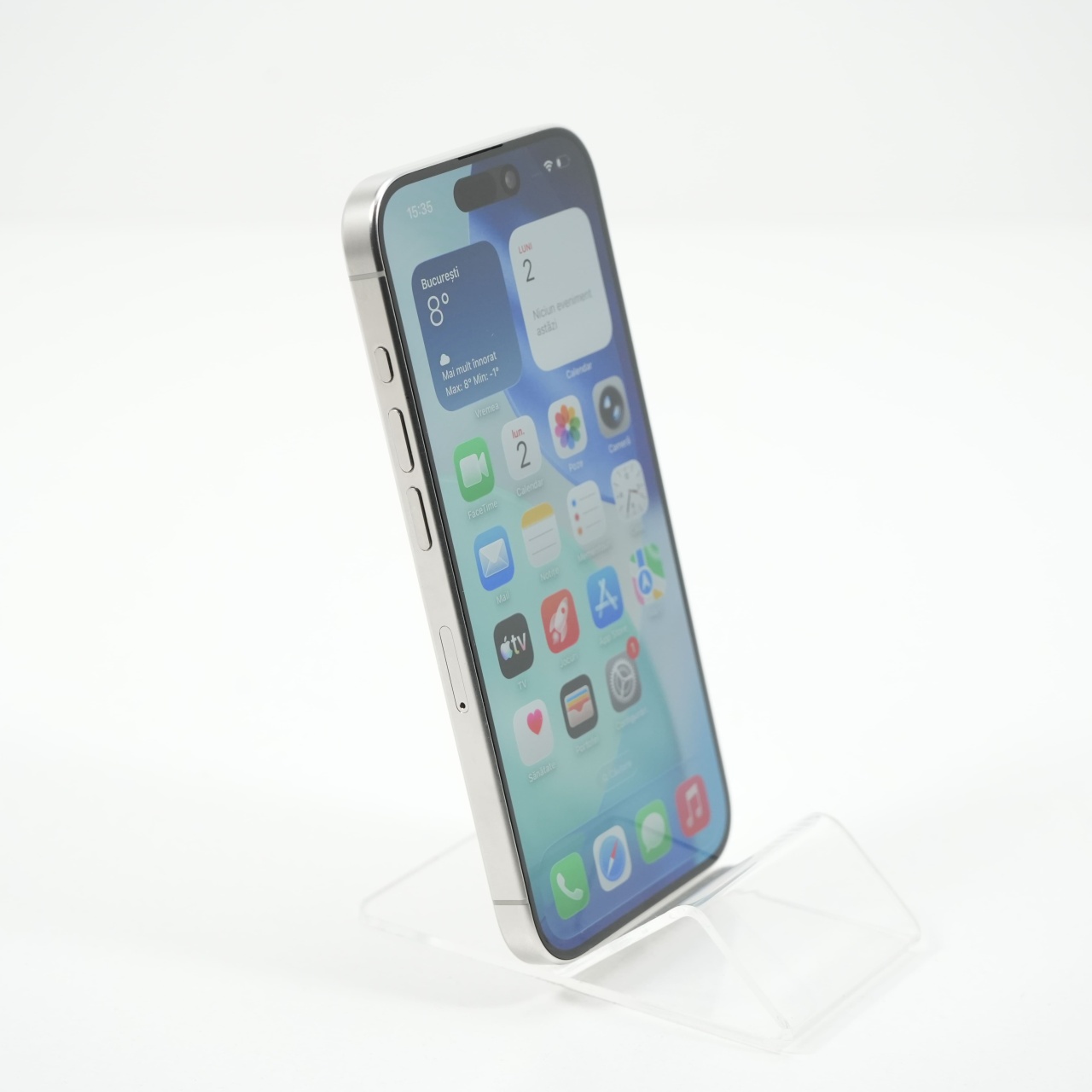 Ecran: 6.1, Refresh Rate 120 Hz Procesor: Apple A17 Pro Memorie RAM: 8GB Memorie interna: 256GB Camera Foto: Principala 48 MPx, Frontala 12 MPx Stare retea: Liber de rețea