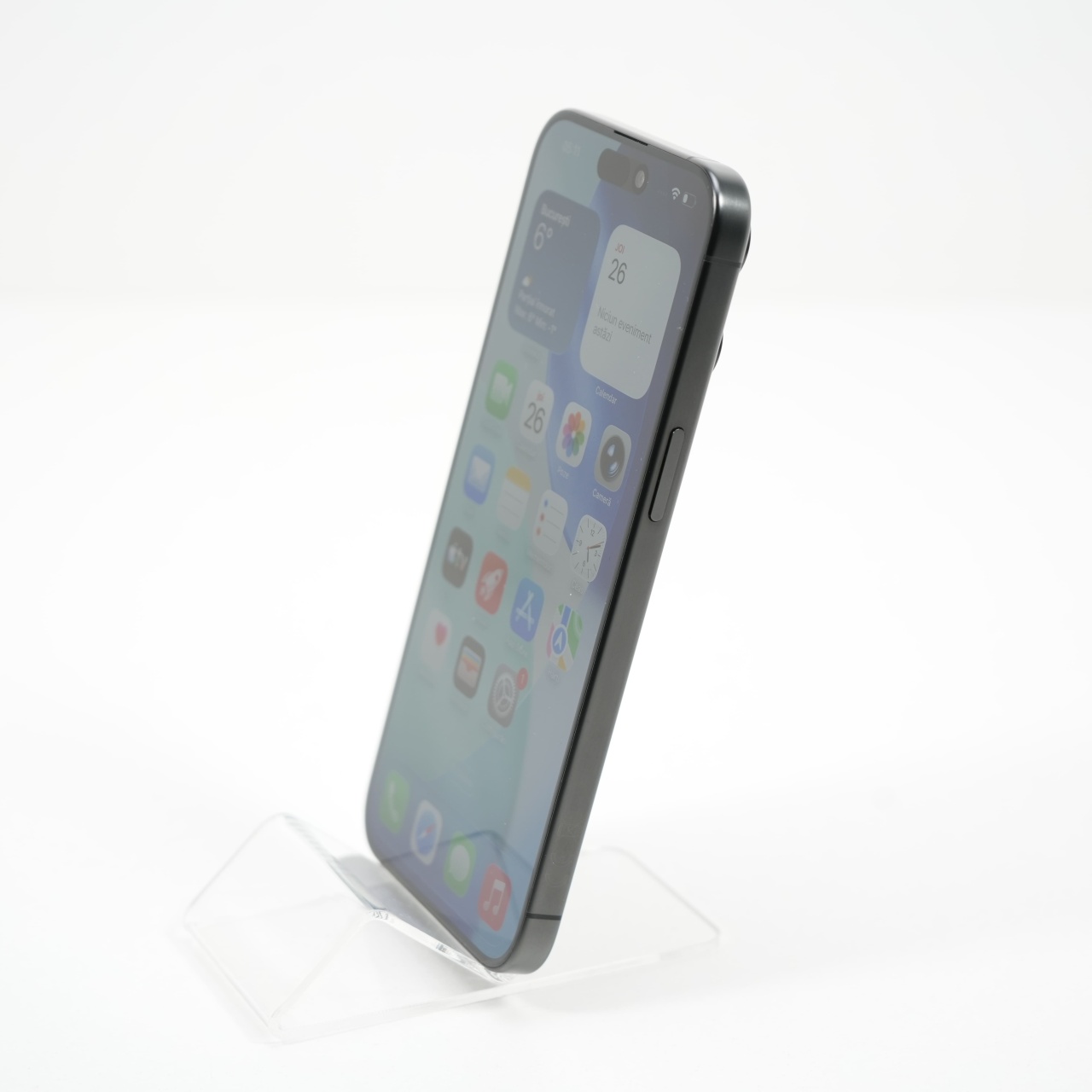 Ecran: 6.7, Refresh Rate 120 Hz Procesor: Apple A17 Pro Memorie RAM: 8GB Memorie interna: 256GB Camera foto: Principala 48 MPx, Frontala 12 MPx Stare retea: Liber de retea