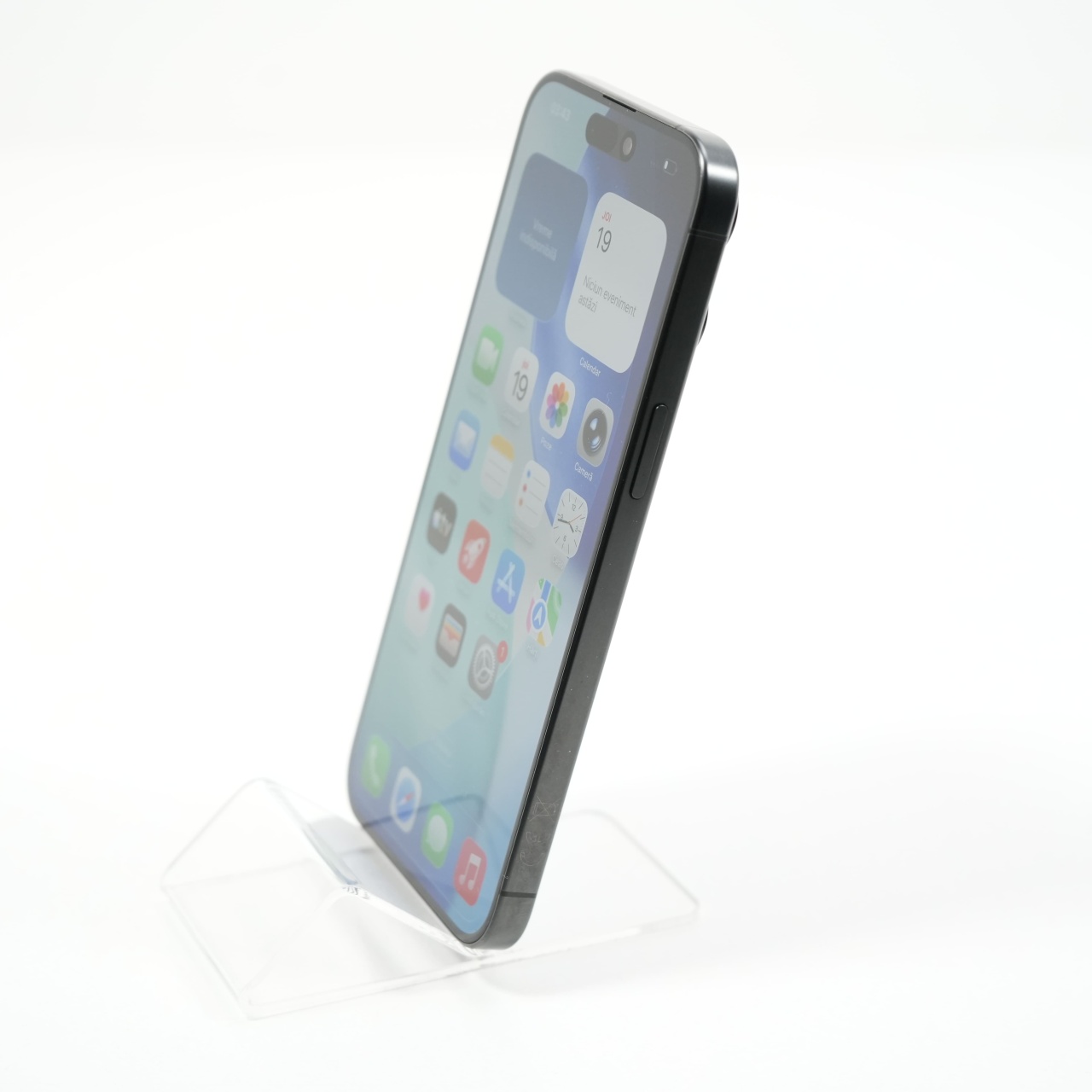 Ecran: 6.7, Refresh Rate 120 Hz Procesor: Apple A17 Pro Memorie RAM: 8 GB Memorie interna: 256GB Camera foto: Principala 48 MPx, Frontala 12 MPx Stare retea: Liber de rețea