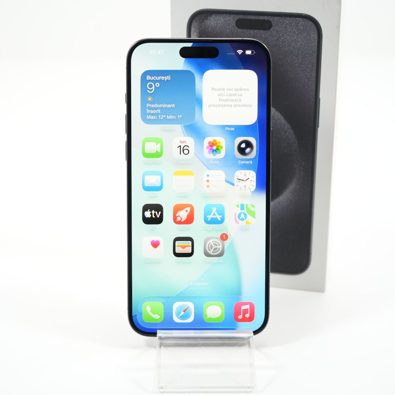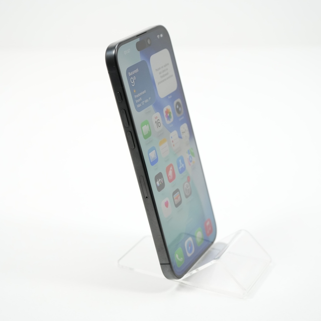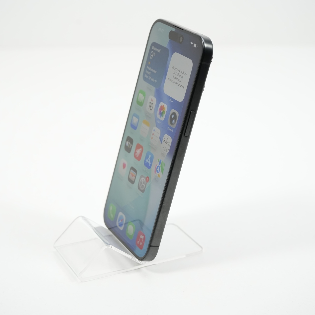 Ecran: 6.7, Refresh Rate 120 Hz Procesor: Apple A17 Pro Memorie RAM: 8 GB Memorie interna: 256GB Camera foto: Principala 48 MPx, Frontala 12 MPx Stare retea: Liber de rețea