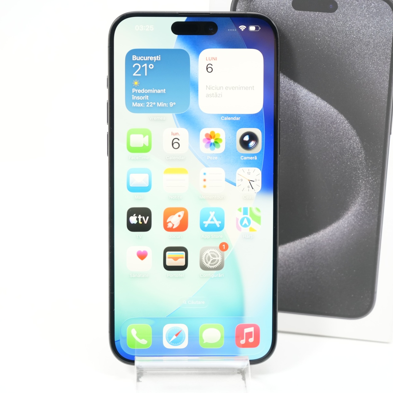 Ecran: 6.7, Refresh Rate 120 Hz Procesor: Apple A17 Pro Memorie RAM: 8 GB Memorie interna: 256GB Camera foto: Principala 48 MPx, Frontala 12 MPx Stare retea: Liber de rețea