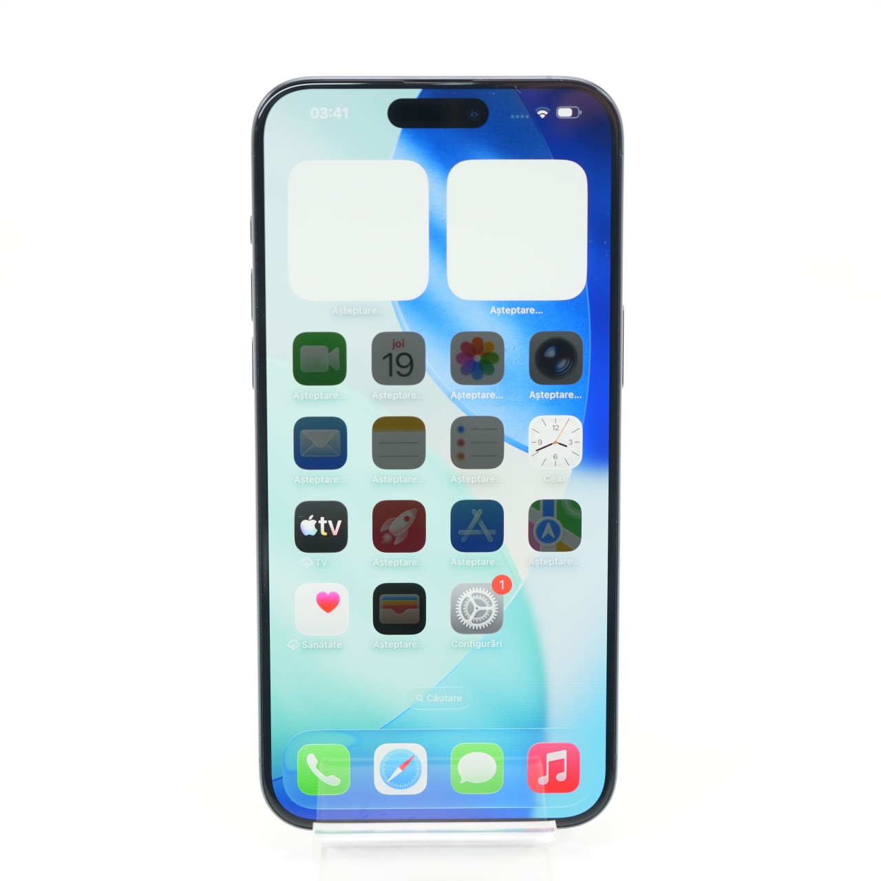 Ecran: 6.7, Refresh Rate 120 Hz Procesor: Apple A17 Pro Memorie RAM: 8GB Memorie interna: 256GB Camera foto: Principala 48 MPx, Frontala 12 MPx Stare retea: Liber de rețea