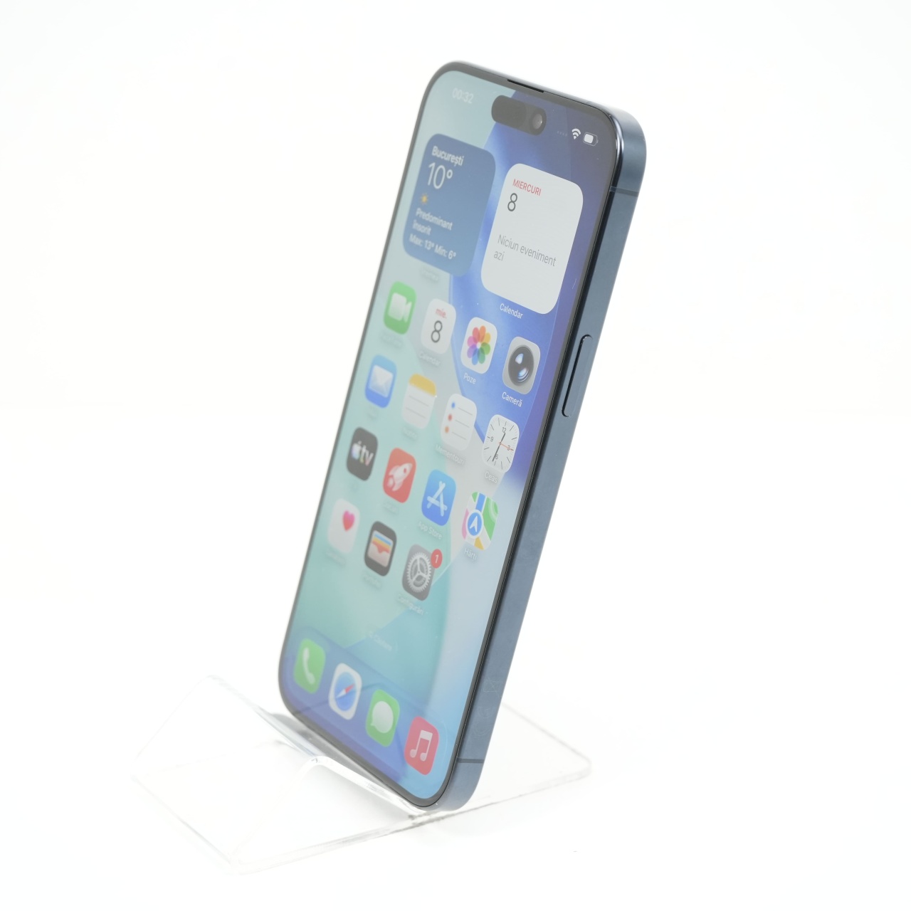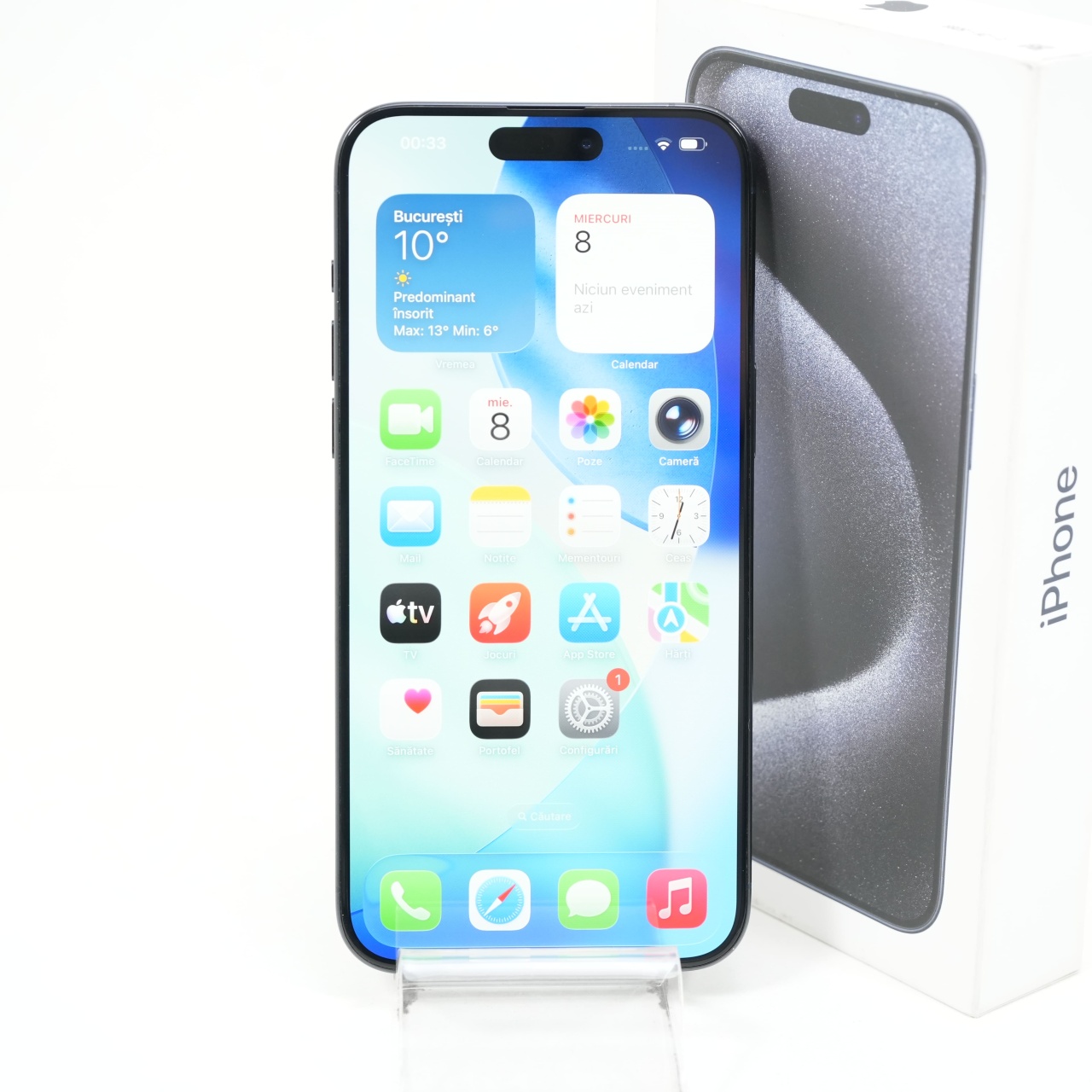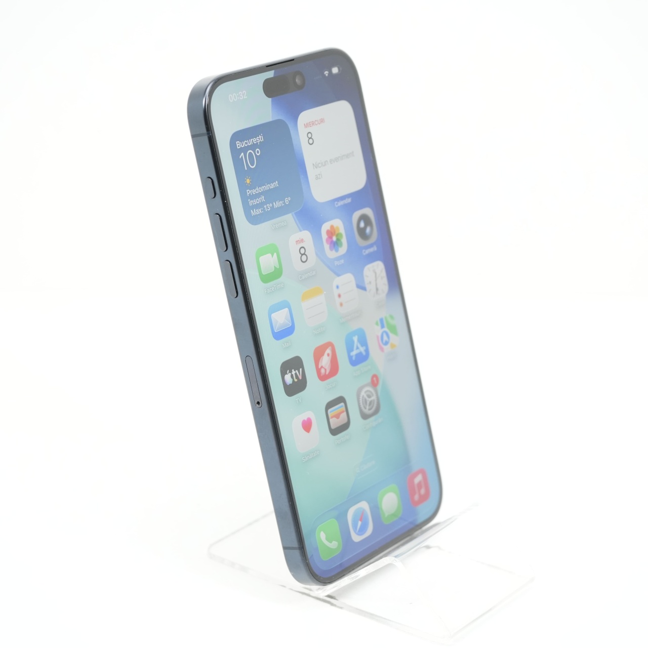Ecran: 6.7, Refresh Rate 120 Hz Procesor: Apple A17 Pro Memorie RAM: 8 GB Memorie interna: 256GB Camera foto: Principala 48 MPx, Frontala 12 MPx Stare retea: Liber de rețea