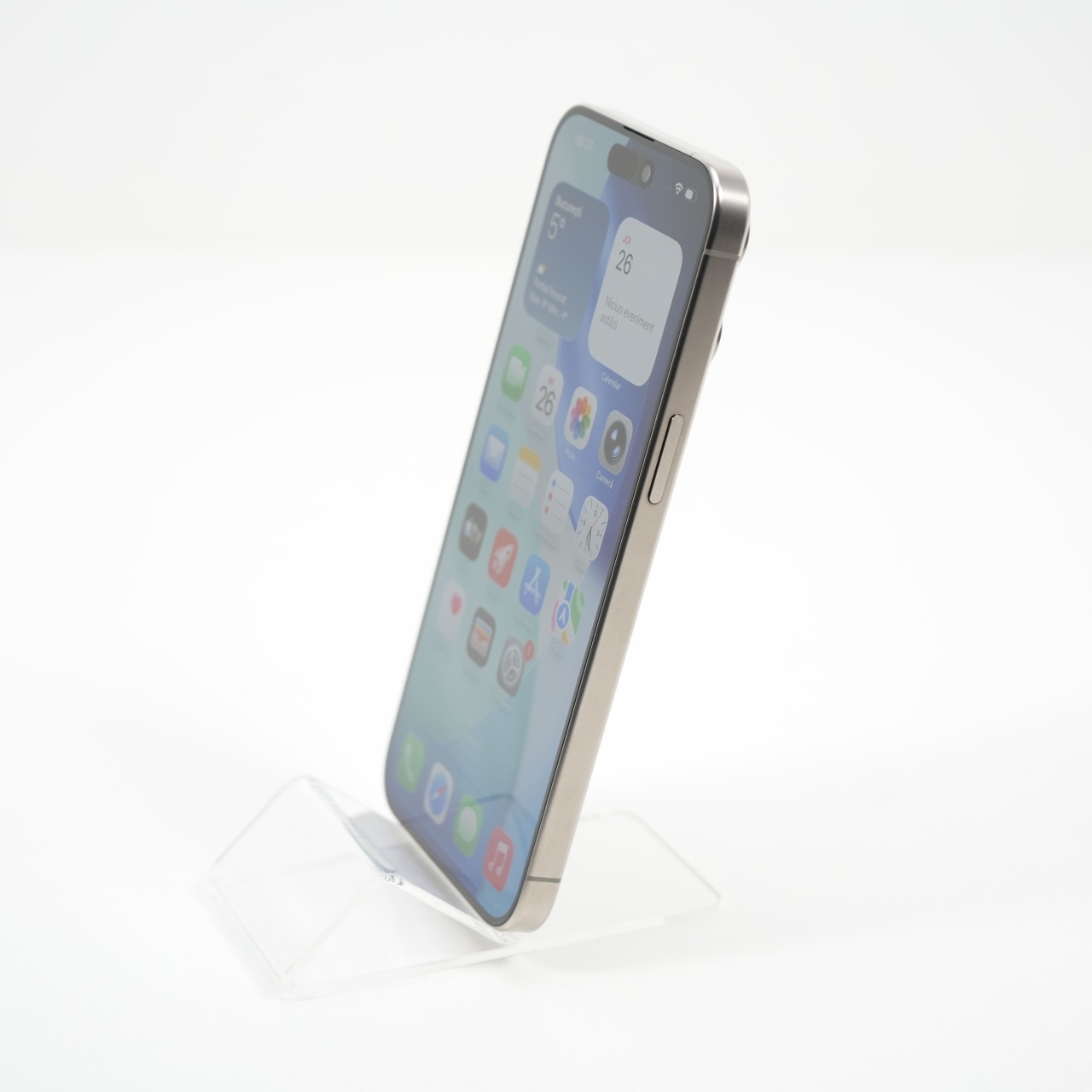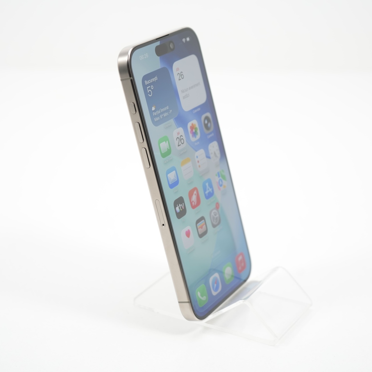 Ecran: 6.7, Refresh Rate 120 Hz Procesor: Apple A17 Pro Memorie RAM: 8GB Memorie interna: 256GB Camera foto: Principala 48 MPx, Frontala 12 MPx Stare retea: Liber de rețea