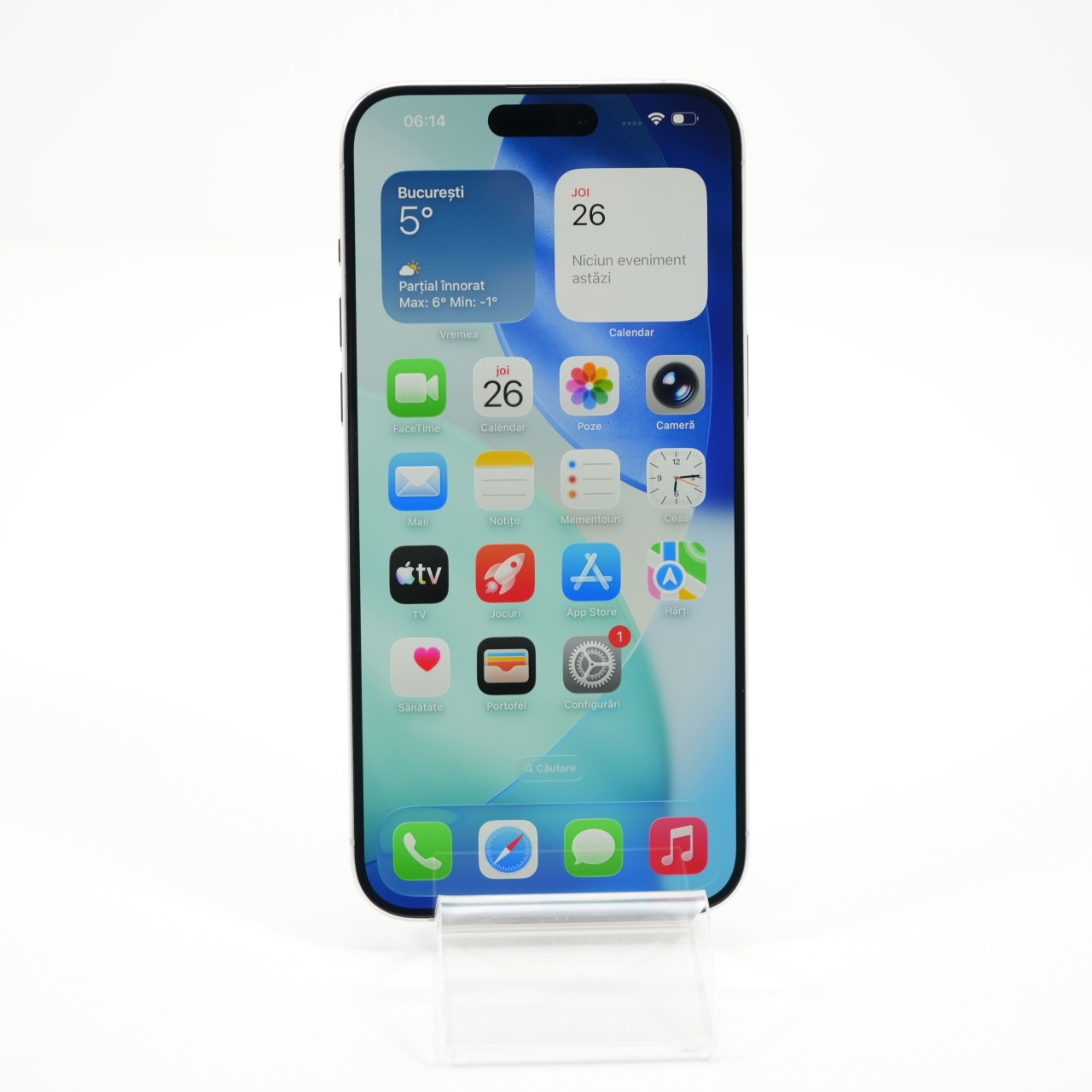 Ecran: 6.7, Refresh Rate 120 Hz Procesor: Apple A17 Pro Memorie RAM: 8GB Memorie interna: 256GB Camera foto: Principala 48 MPx, Frontala 12 MPx Stare retea: Liber de rețea