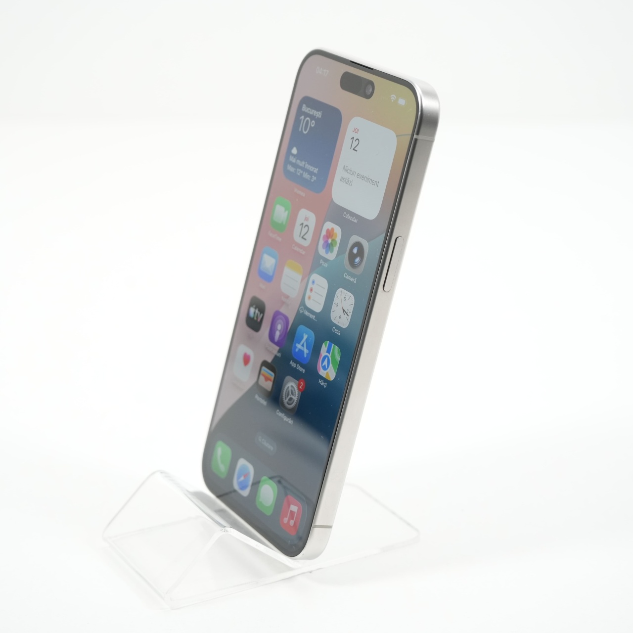 Ecran: 6.7, Refresh Rate 120 Hz Procesor: Apple A17 Pro Memorie RAM: 8GB Memorie interna: 512GB Camera foto: Principala 48 MPx, Frontala 12 MPx Stare retea: Liber de retea