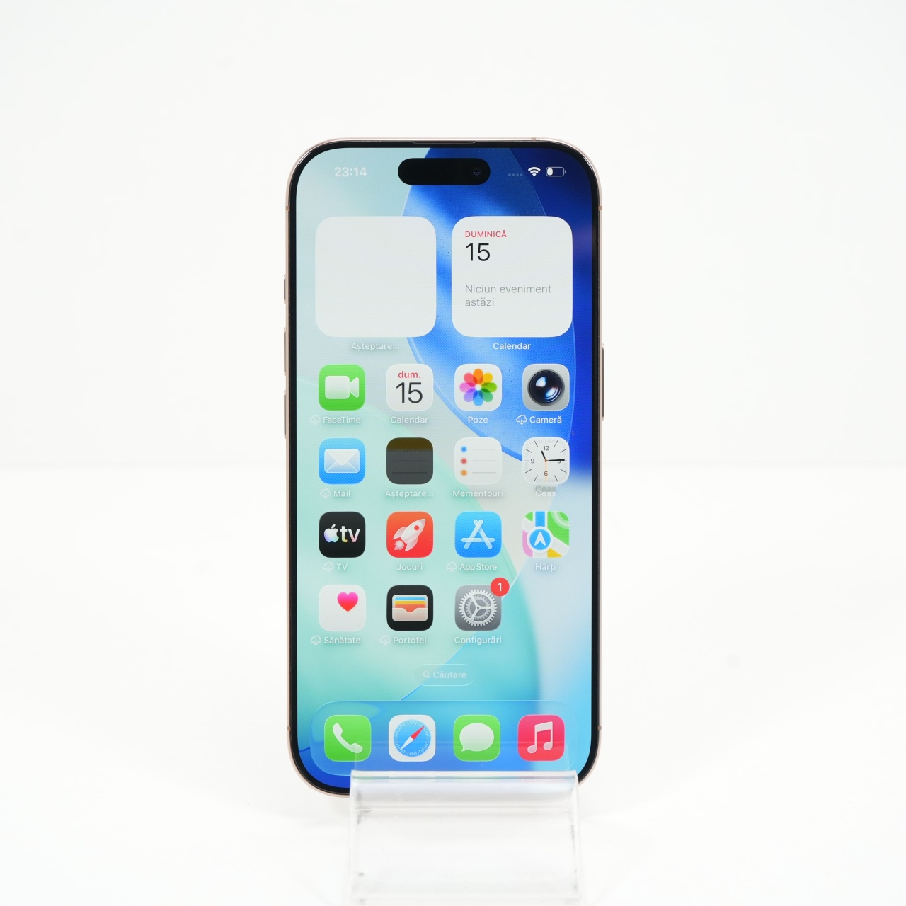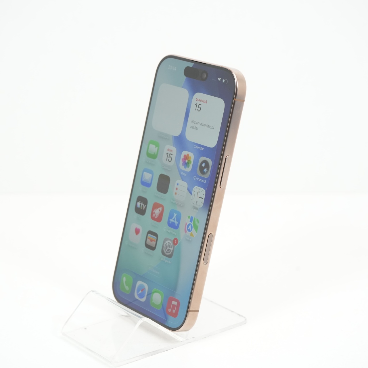 Ecran: OLED 6.3, 120 Hz Procesor: Apple A18 Pro Memorie RAM: 8 GB Memorie interna: 128GB Camera foto: Principala 48 MPx, Frontala 12 MPx Stare retea: Liber de rețea