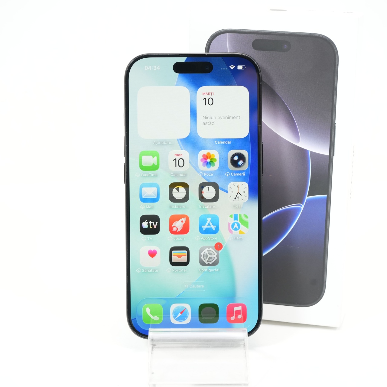 Ecran: OLED de 6.3, Refresh Rate 120 Hz Procesor: Apple A18 Pro Memorie RAM: 8 GB Memorie interna: 256GB Camera Foto: Principala 48 MPx, Frontala 12 MPx Stare retea: Liber de rețea