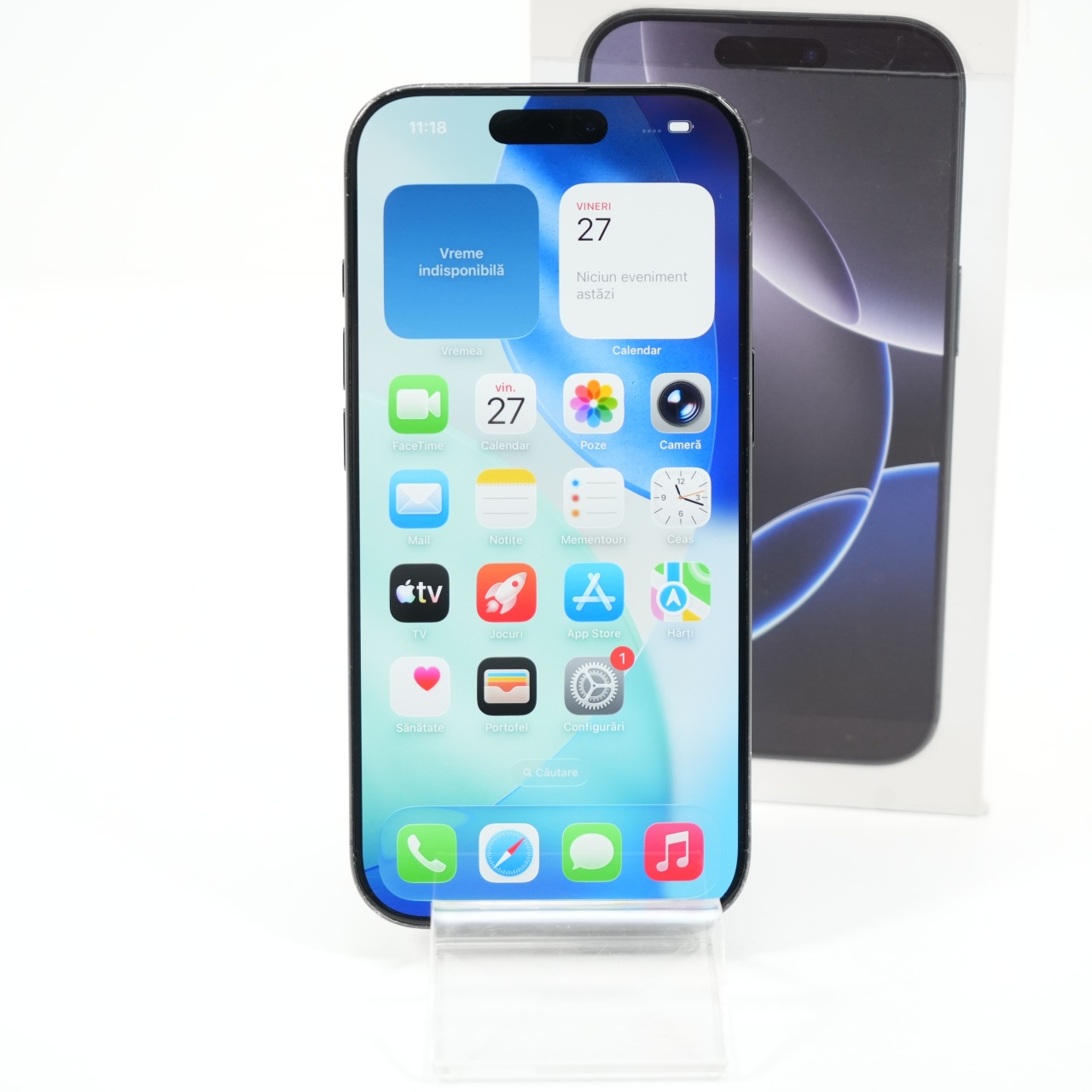Ecran: OLED de 6.3, Refresh Rate 120 Hz Procesor: Apple A18 Pro Memorie RAM: 8 GB Memorie interna: 256GB Camera Foto: Principala 48 MPx, Frontala 12 MPx Stare retea: Liber de rețea