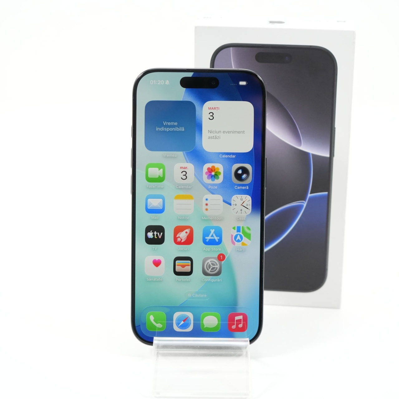 Ecran: OLED de 6.3, Refresh Rate 120 Hz Procesor: Apple A18 Pro Memorie RAM: 8 GB Memorie interna: 256GB Camera Foto: Principala 48 MPx, Frontala 12 MPx Stare retea: Liber de rețea