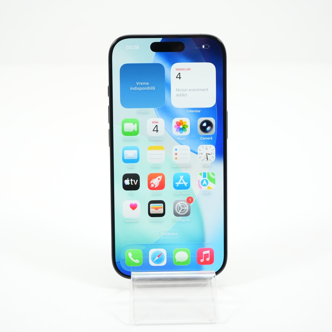 Ecran: OLED de 6.3, Refresh Rate 120 Hz Procesor: Apple A18 Pro Memorie RAM: 8 GB Memorie interna: 256GB Camera Foto: Principala 48 MPx, Frontala 12 MPx Stare retea: Liber de rețea